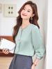 2022 Primavera e Outono Nova Moda Coreana Commuter Camisa de Renda Solta Slimming Branco Decote em V Manga Longa Camisa Feminina Na Moda