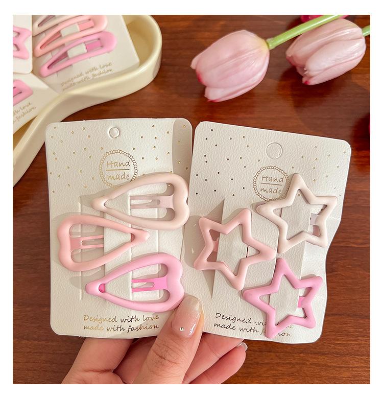 Grampo de Cabelo Rosa Fofo de Estrela Feminino Presilha Lateral para Cabelo Feminino Grande Infantil Coração Clipe Bb Cabelo Quebrado Grampo de Cabelo Enfeite de Cabelo