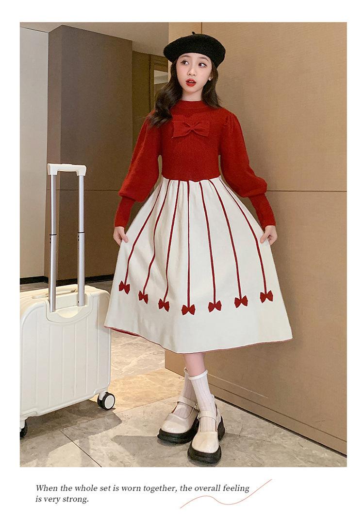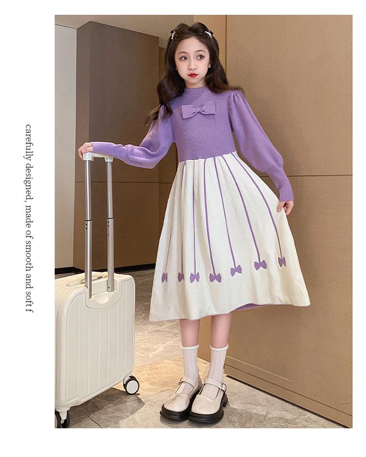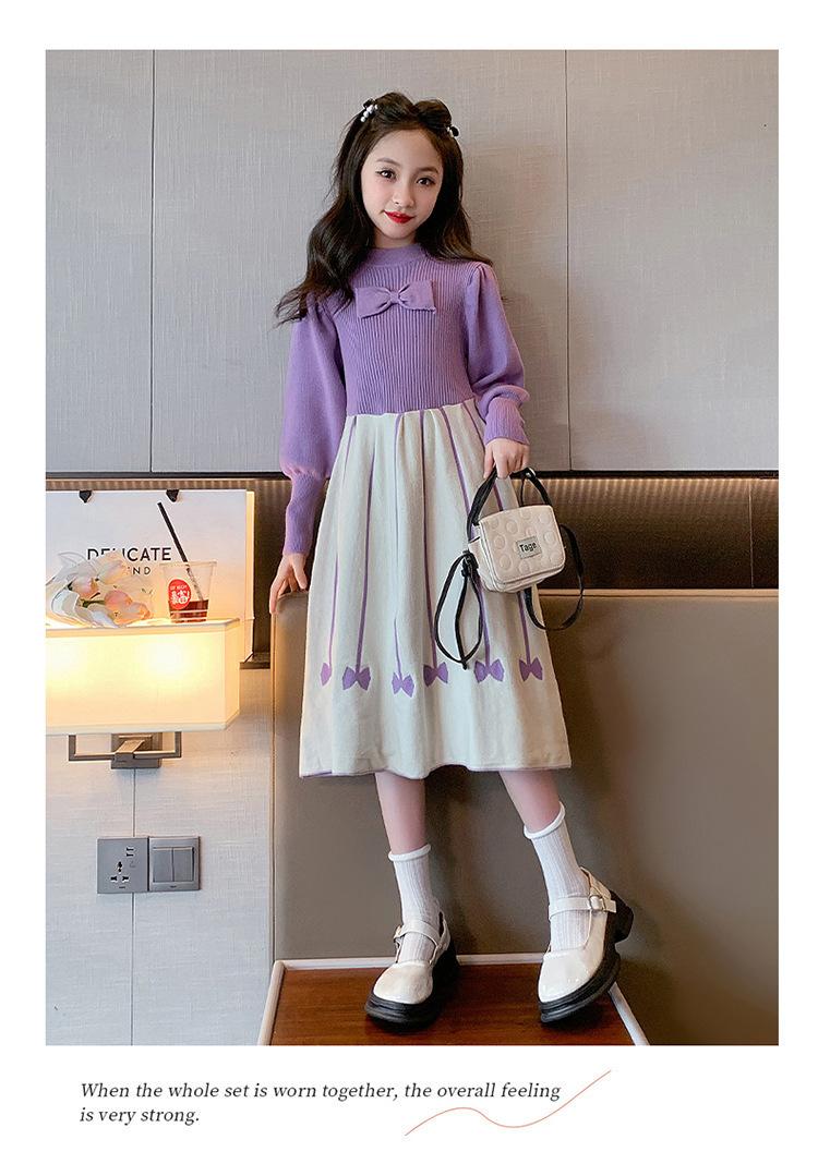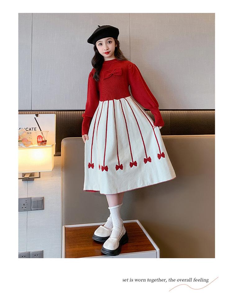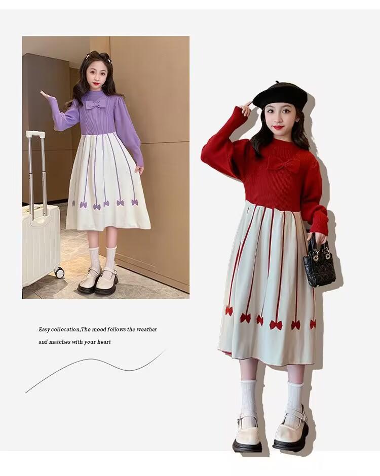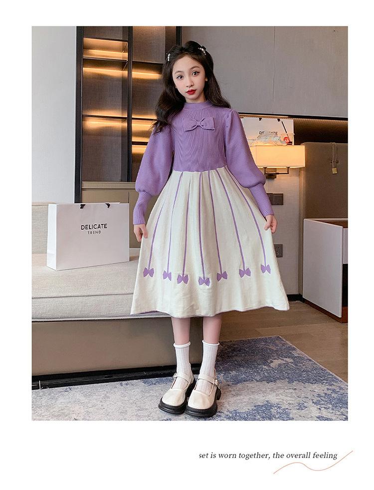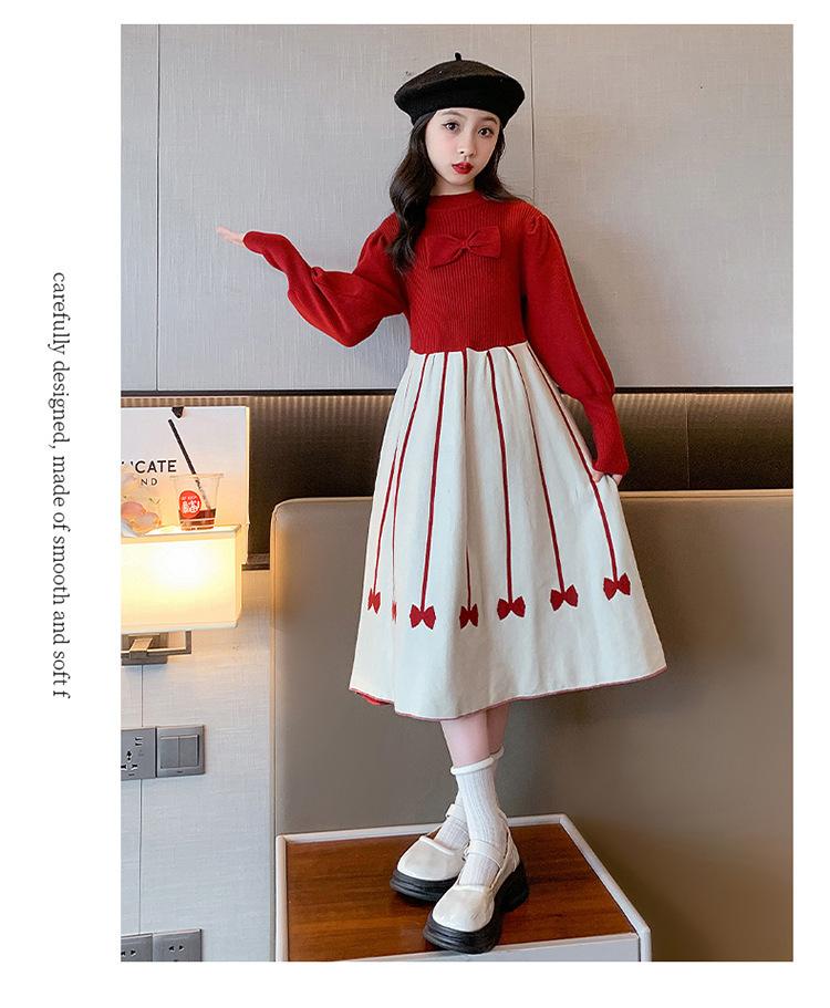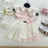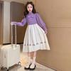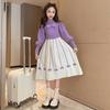 Feminino Bebê Estilo Coreano Emendado Saia 2024 Outono/Inverno Novo Estilo Ocidental Infantil Arco Moda Puff Manga Vestido Na Moda