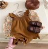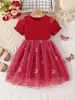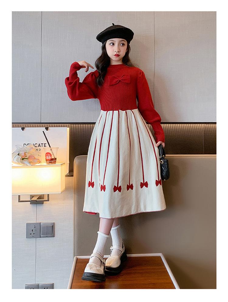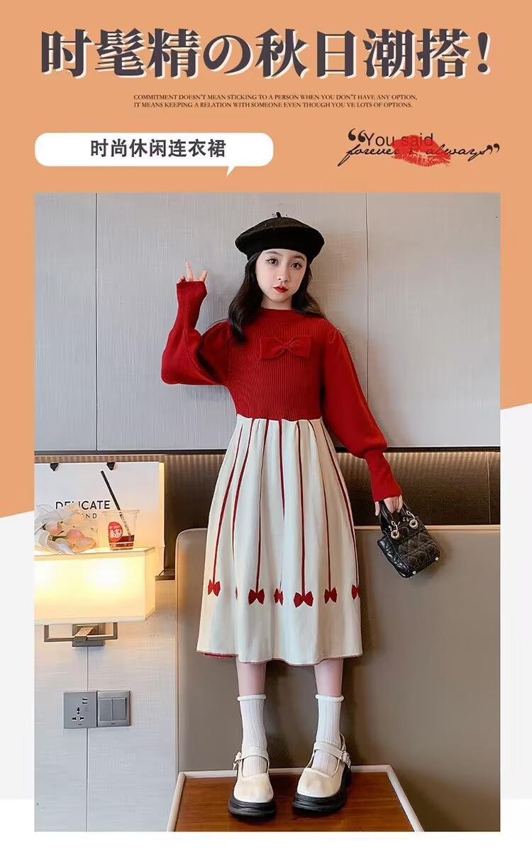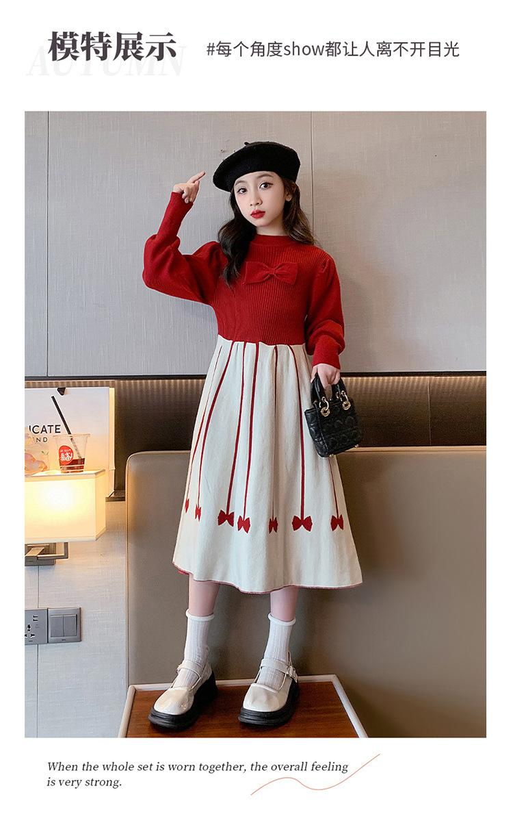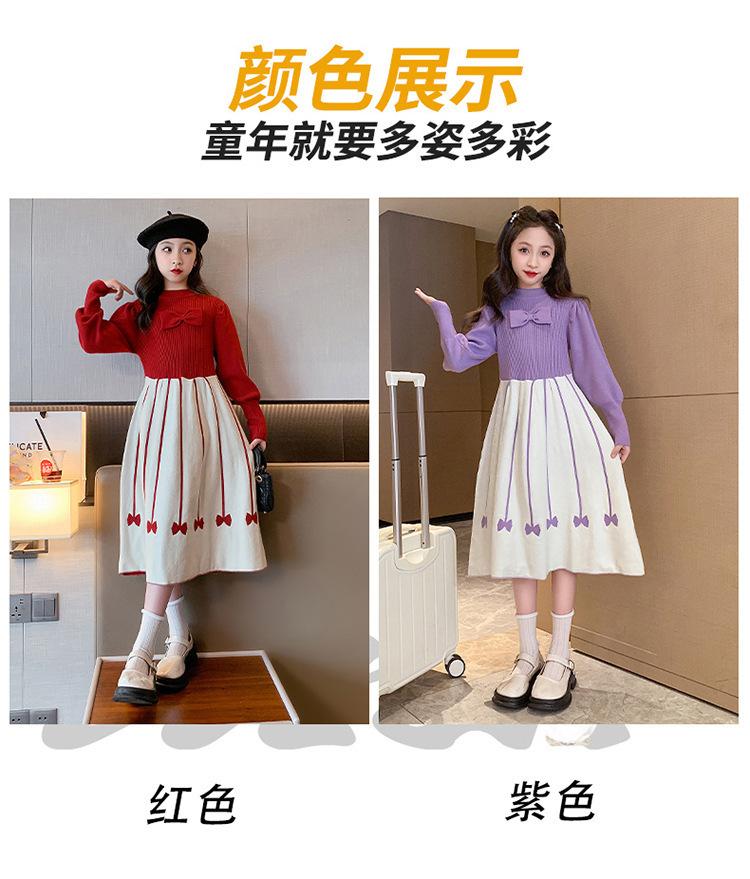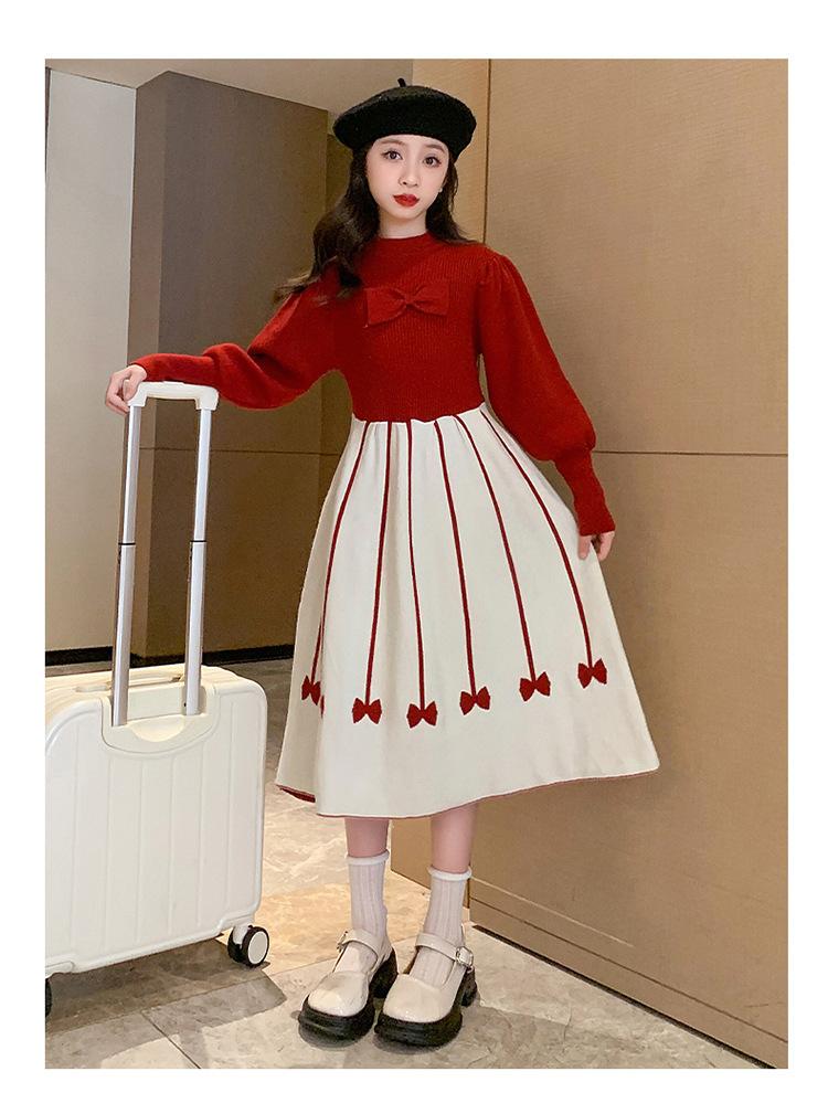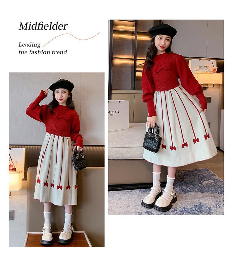 Feminino Bebê Estilo Coreano Emendado Saia 2024 Outono/Inverno Novo Estilo Ocidental Infantil Arco Moda Puff Manga Vestido Na Moda