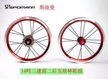 Vendas diretas da fábrica, conjunto de rodas pequenas de três velocidades com freio em V de 14 polegadas, cubo dianteiro e traseiro com cinco rolamentos, bicicleta dobrável