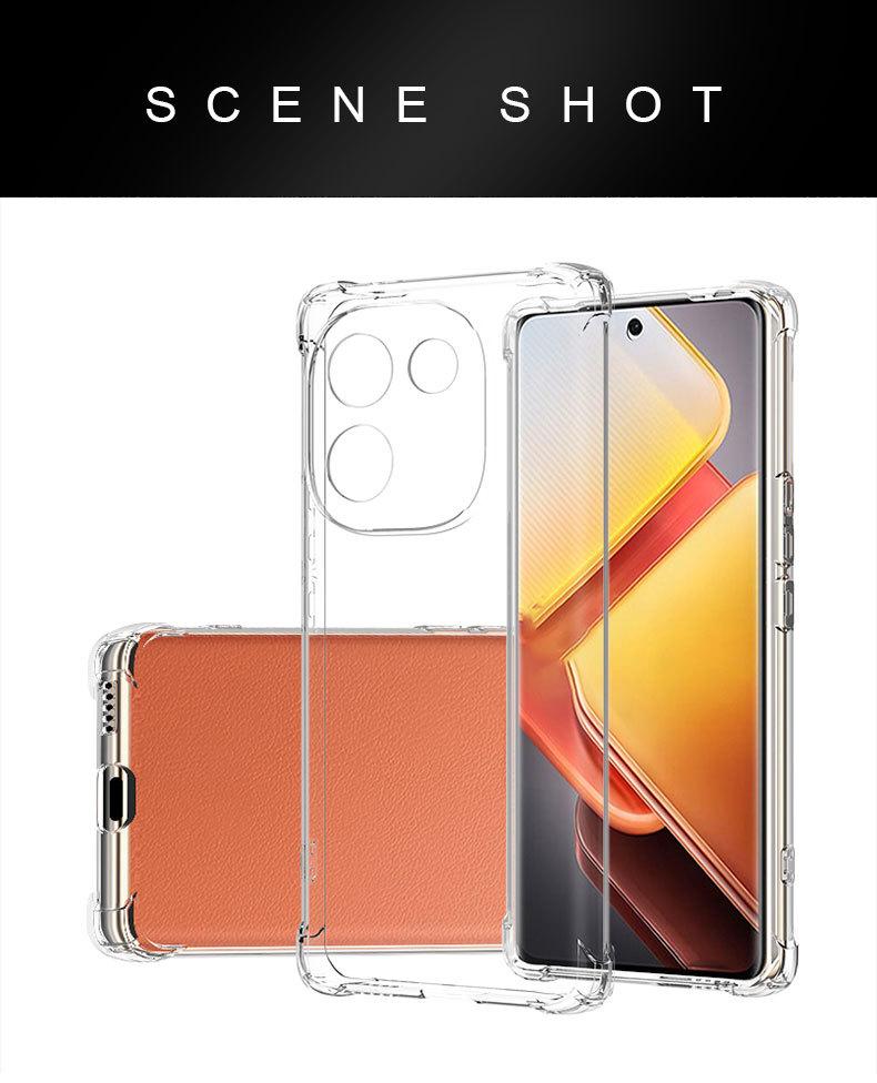 3: Detalhes do produto: transparente, antiamarelamento, sem embaçamento, pintura UV não cai, longa vida útil, molde de máquina real, há dois tipos de orifícios para lentes para escolher, proteção de orifício de precisão um para um de cobertura total, o grande orifício para lente tem uma função de proteção de lente de design convexo, o design do airbag de quatro cantos é para evitar que o telefone caia e reduzir colisões de curta distância para obter um efeito antiqueda, a espessura do produto é de 1,4-1,5 mm, a experiência de ajuste de instalação é confortável, à prova de suor e sem impressões digitais, e há um design de orifício para cordão na lateral para facilitar o uso de acessórios, etc.