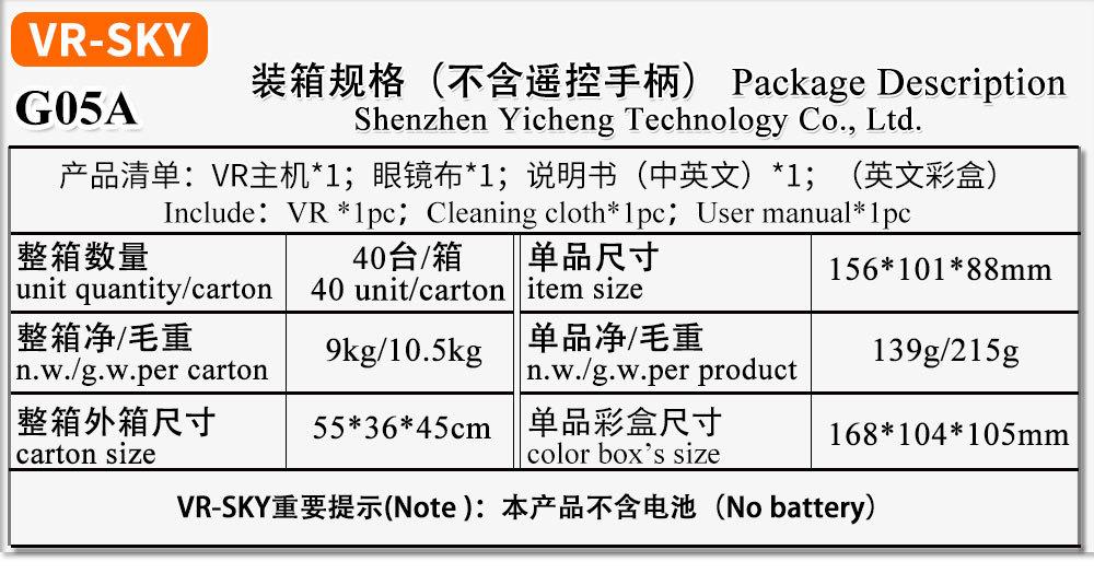 Embalagem: óculos VR (incluindo faixa de cabeça) * 1; manual de instruções (em chinês e inglês) * 1; pano para lentes * 1; caixa de embalagem em inglês * 1
