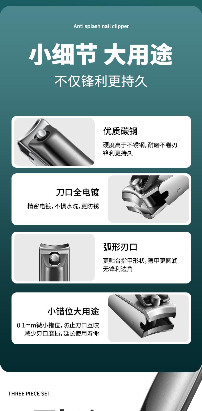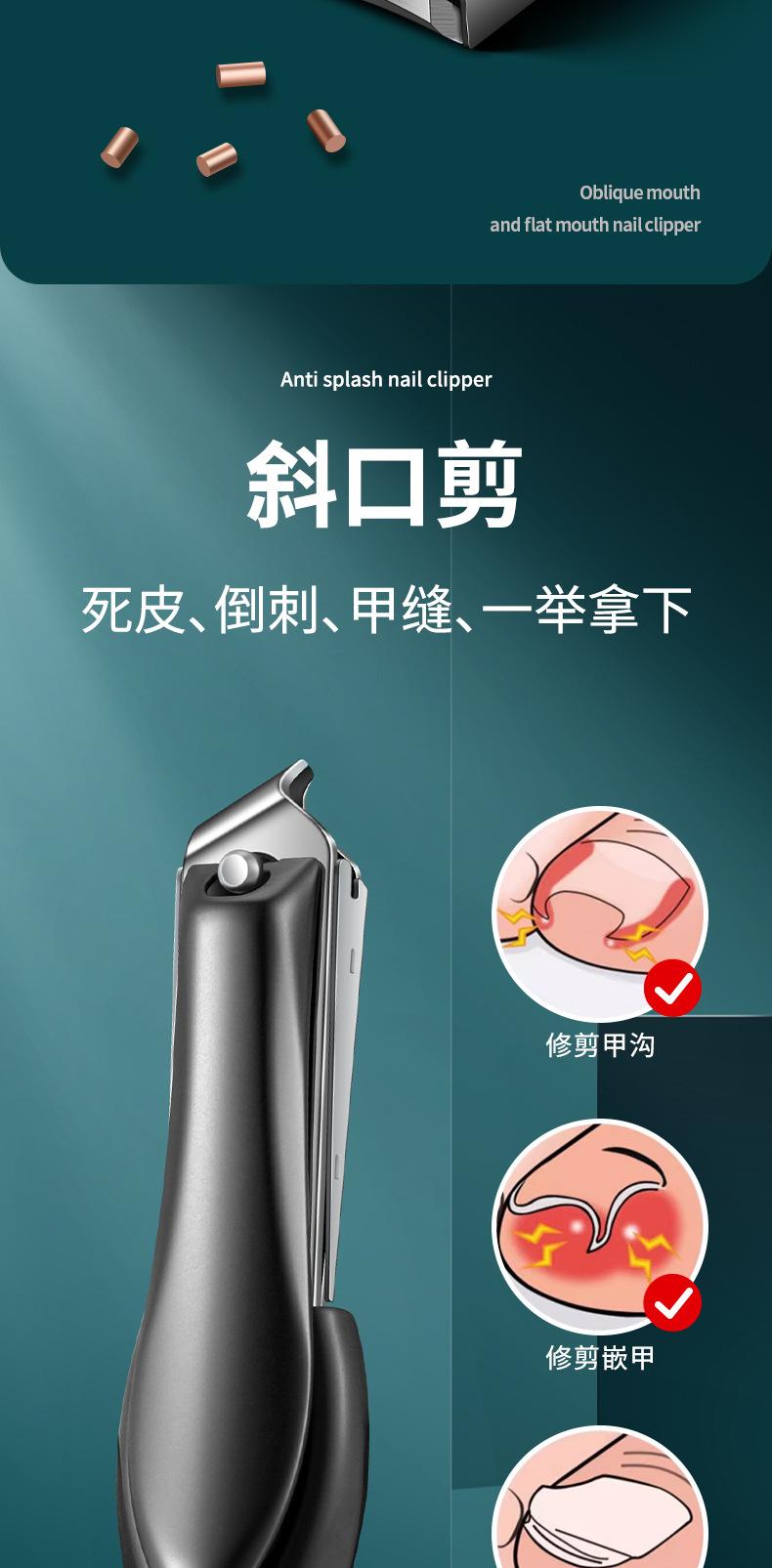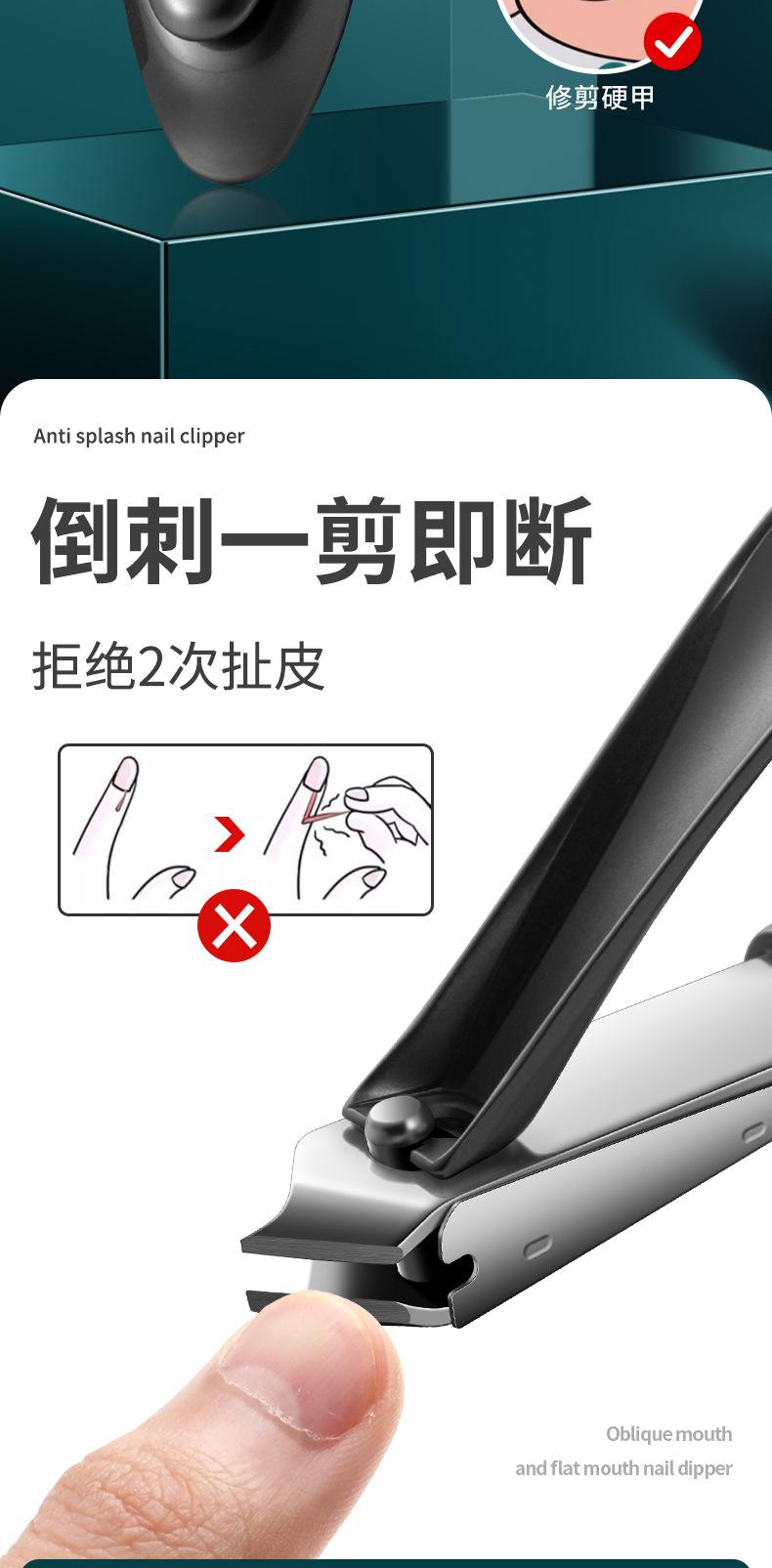 Cortador de unhas de aço preto Cortador de unhas único doméstico Grande cortador de unhas oblíquo anti-respingo para homens e mulheres