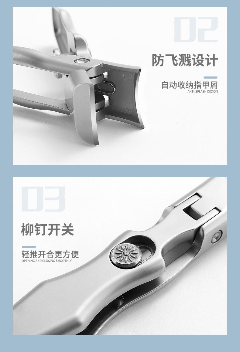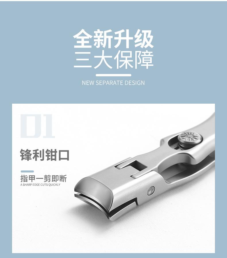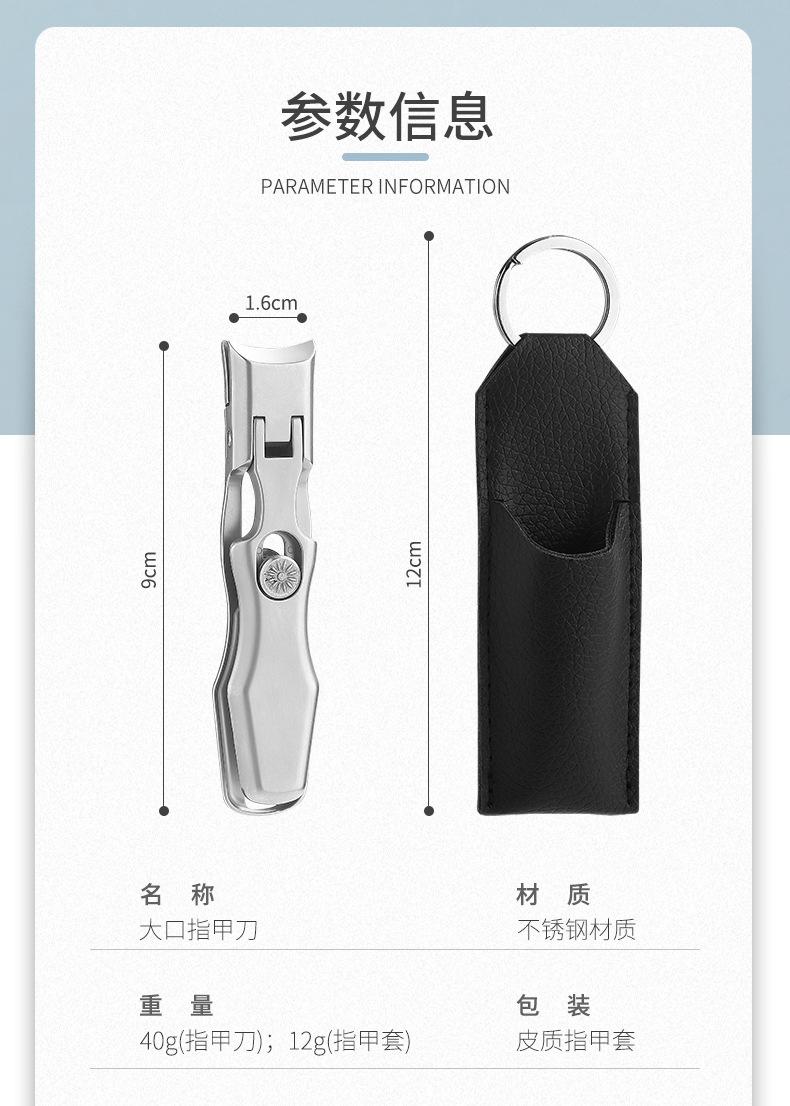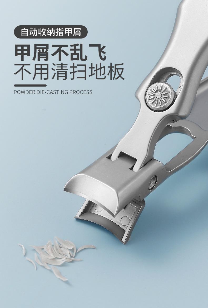 Cortador de Unhas Anti-Respingos de Aço Inoxidável Abertura Grande Cortador de Unhas Conjunto Único Cortador de Unhas Portátil Cinza Manicure