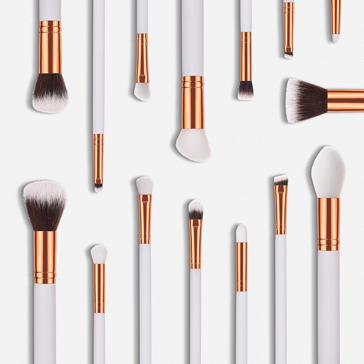 | Conjunto de 15 pincéis de maquiagem brancos | YF23111713 | alto | OPP | Cabo de madeira/tubo de alumínio/lã de nylon | 20*16*1,6 | 222 |