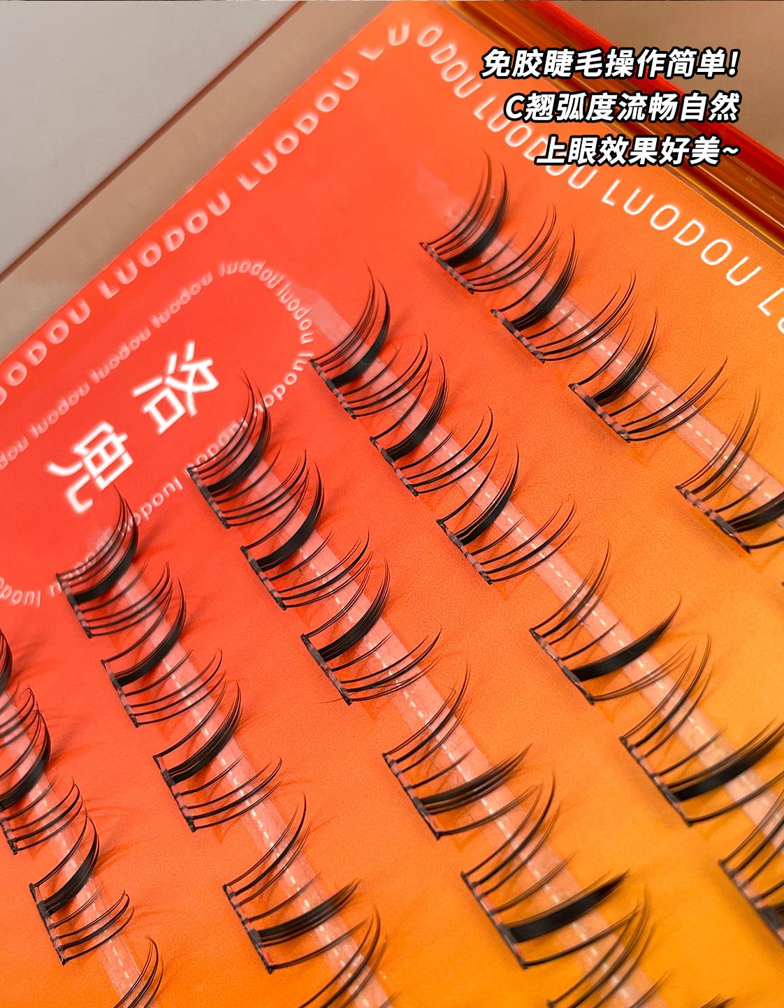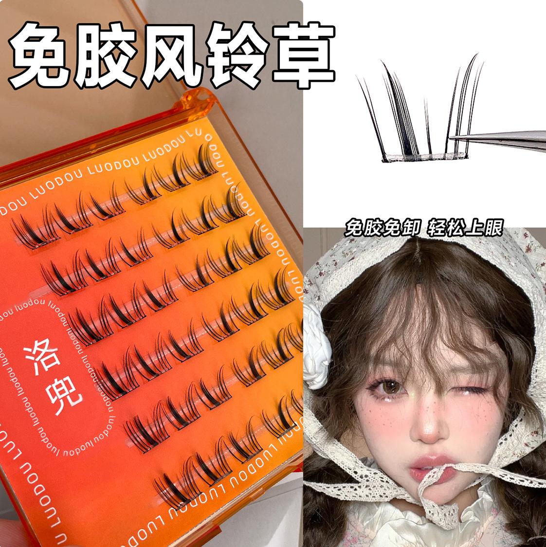 Luodou 6 fileiras Bellflower Cílios postiços sem cola Simulação grossa Cartoon Barbie Single Cluster Elf Eye Cílios Segmentados Femininos
