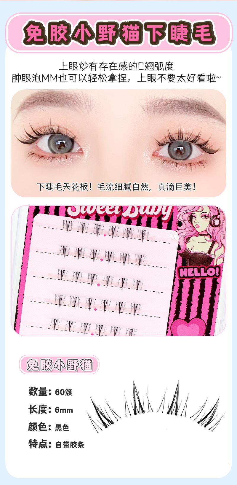 Compre Série de Cílios Inferiores Sem Cola Menglu Pequena Chama Garra de Gatinho Selvagem Cílios Postiços Livres de Remoção Novato Preguiçoso Cacho Único no atacado no Joom.pro