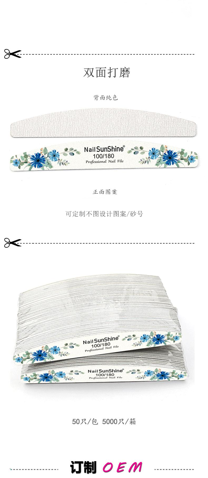 Lixa de unha de meia-lua de unha de impressão de lixa branca pura tira de polimento com lixa de dente para corte de unhas