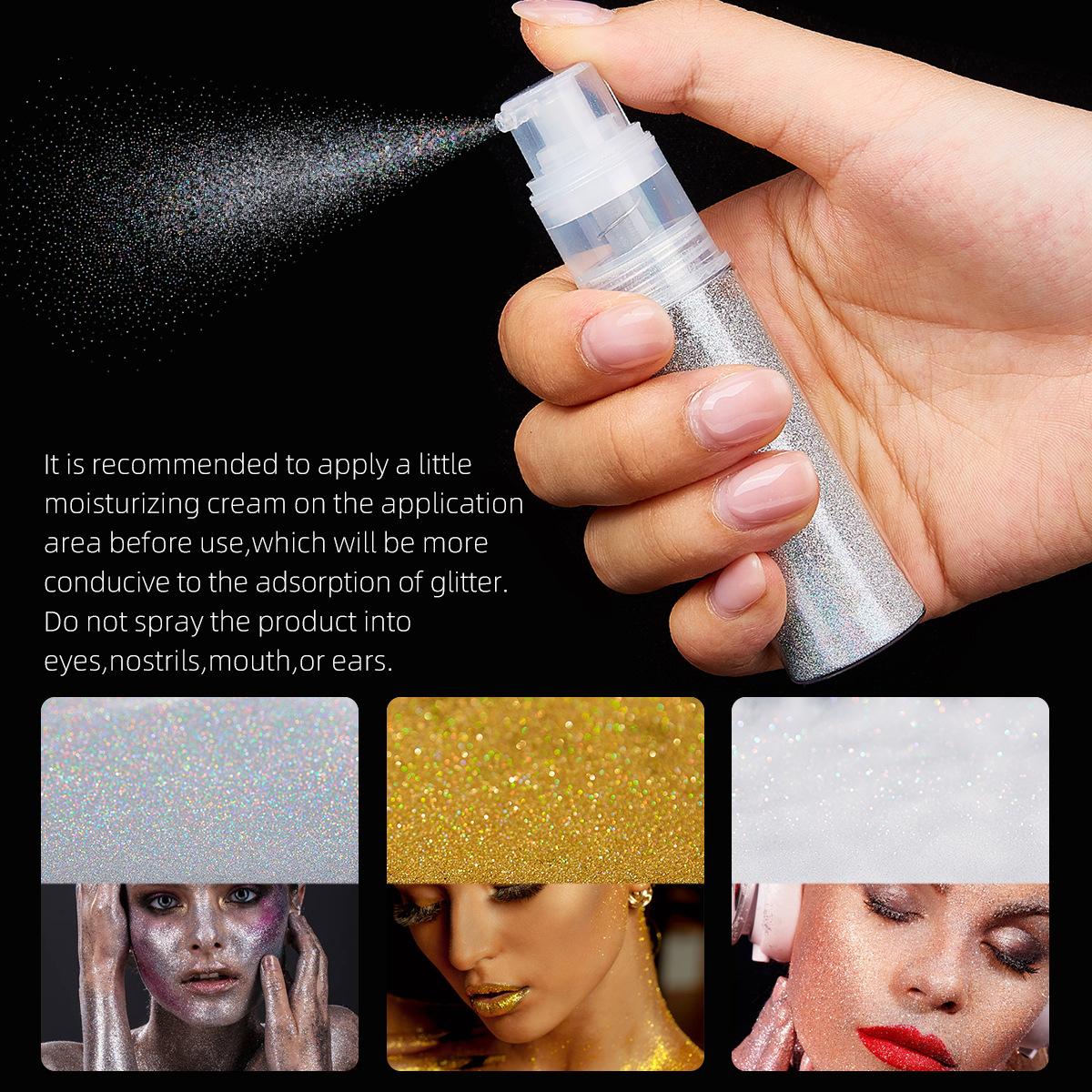 Pó de glitter transfronteiriço spray flash laser gel corporal gel lantejoulas flash pó rosto clareamento maquiagem em pó de alto brilho