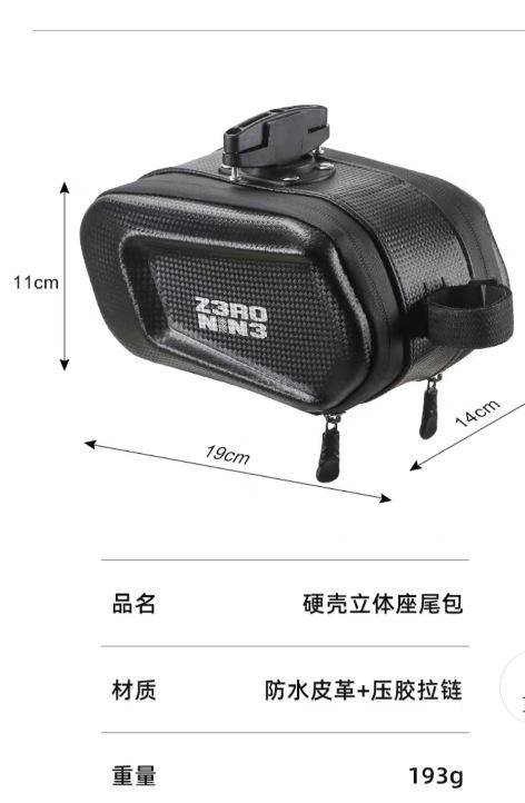 Double-sided hard shell upper tube bag - all black carbon pattern [free rain cover], Reflective strip + leathe...