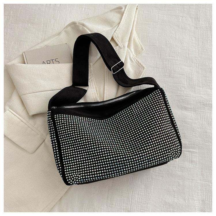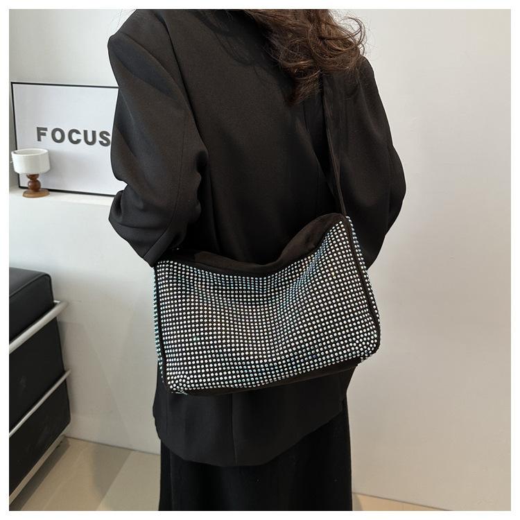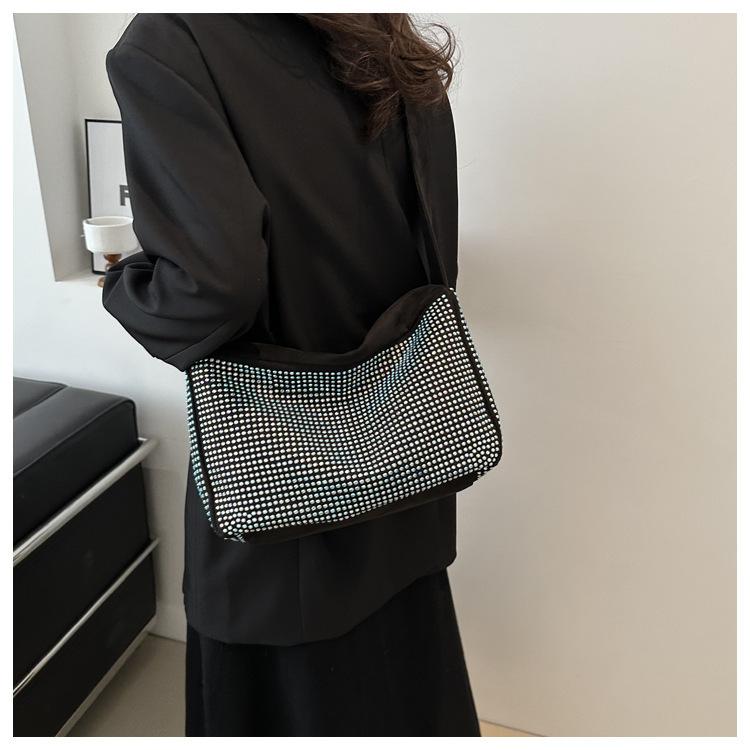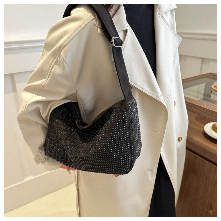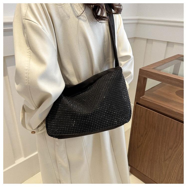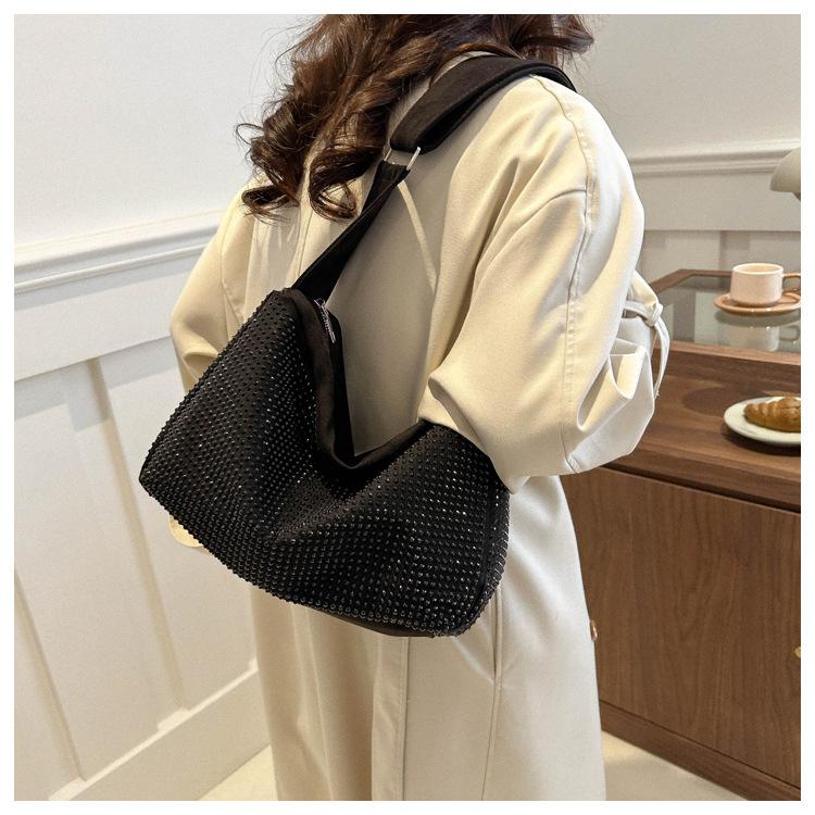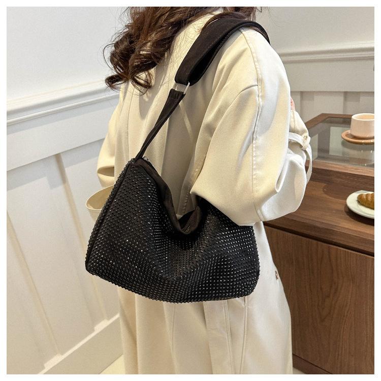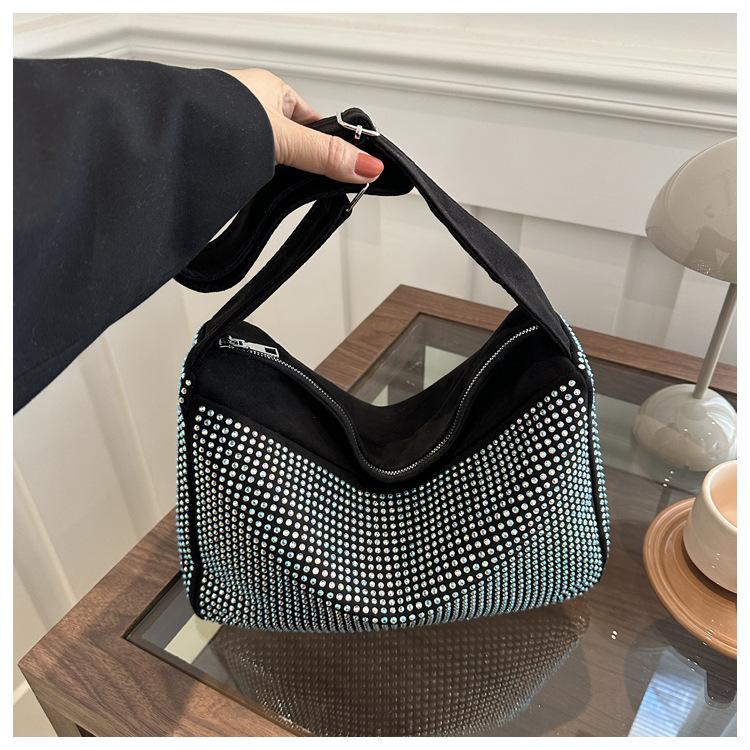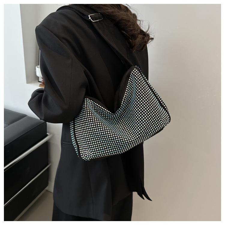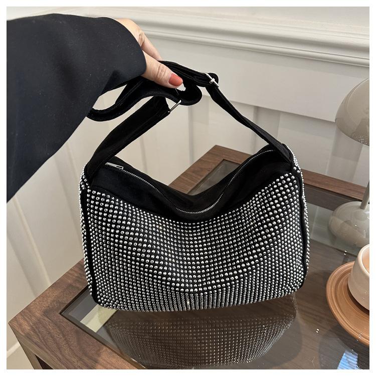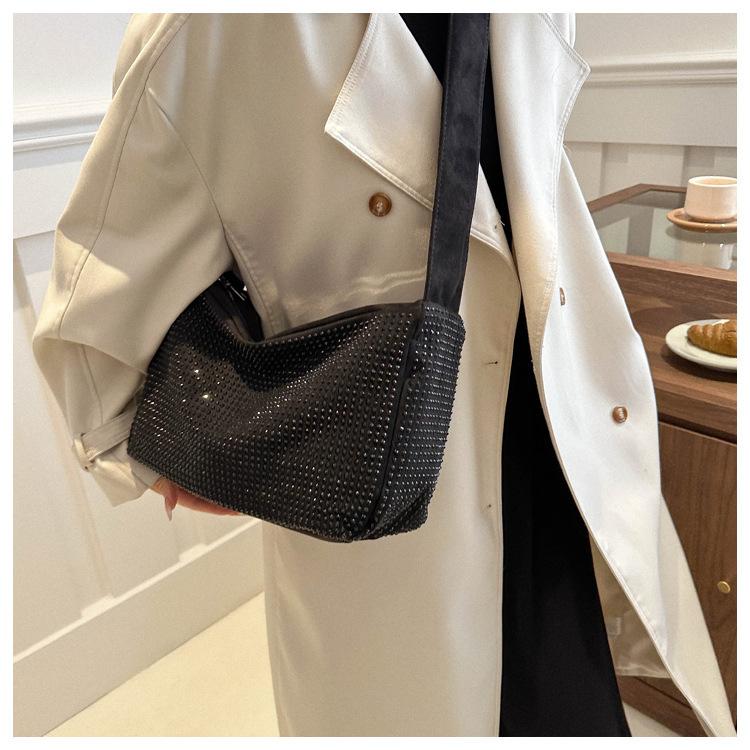 Estilo Hong Kong retrô diamante brilhante Bolsa feminina 2024 primavera nova bolsa de ombro portátil viajante casual axila bolsa feminina atacado
