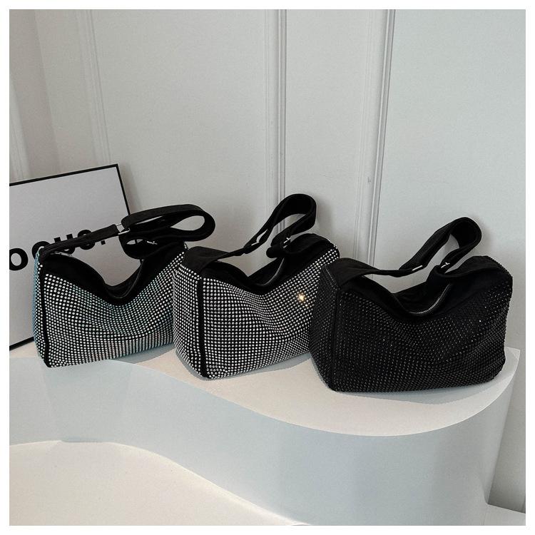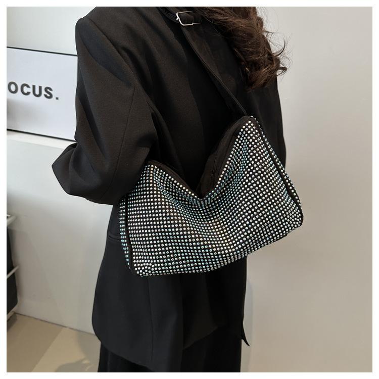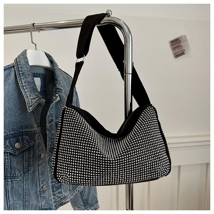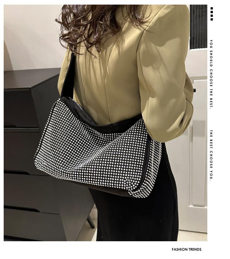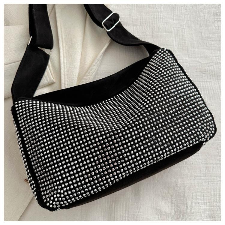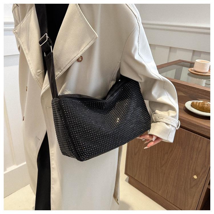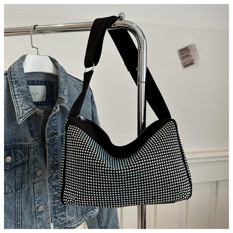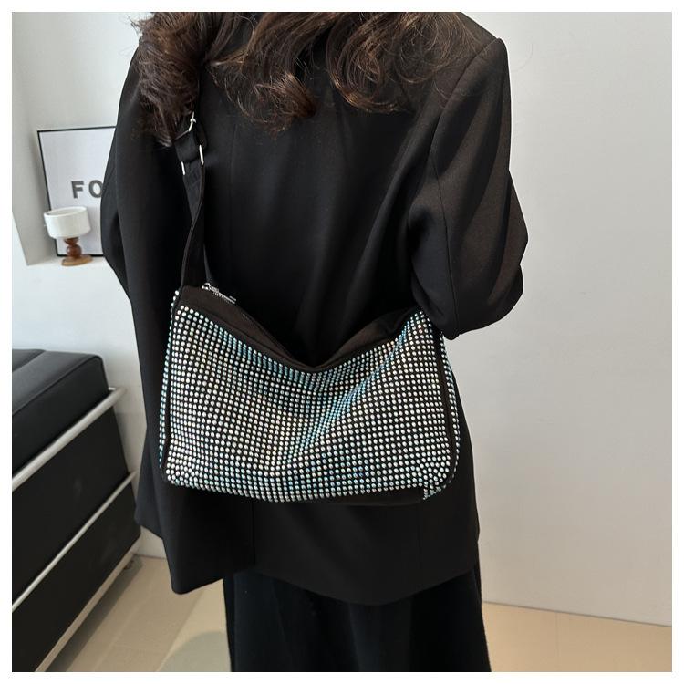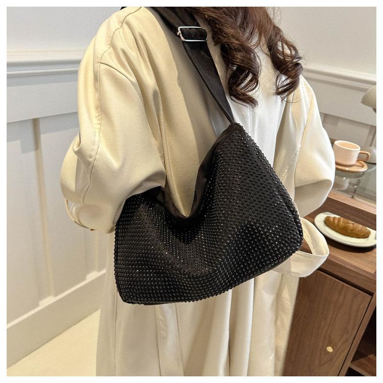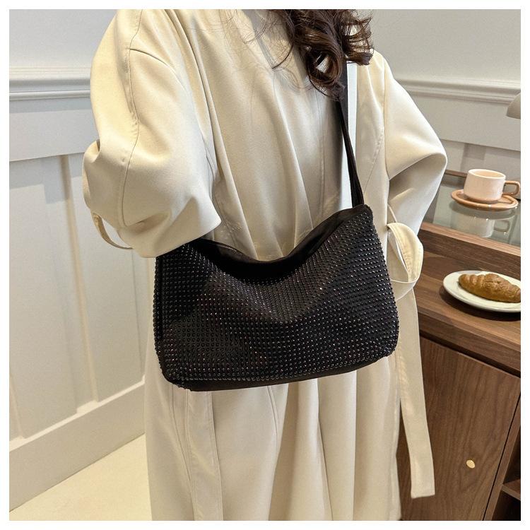 Estilo Hong Kong retrô diamante brilhante Bolsa feminina 2024 primavera nova bolsa de ombro portátil viajante casual axila bolsa feminina atacado