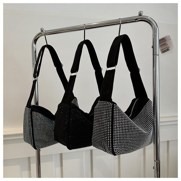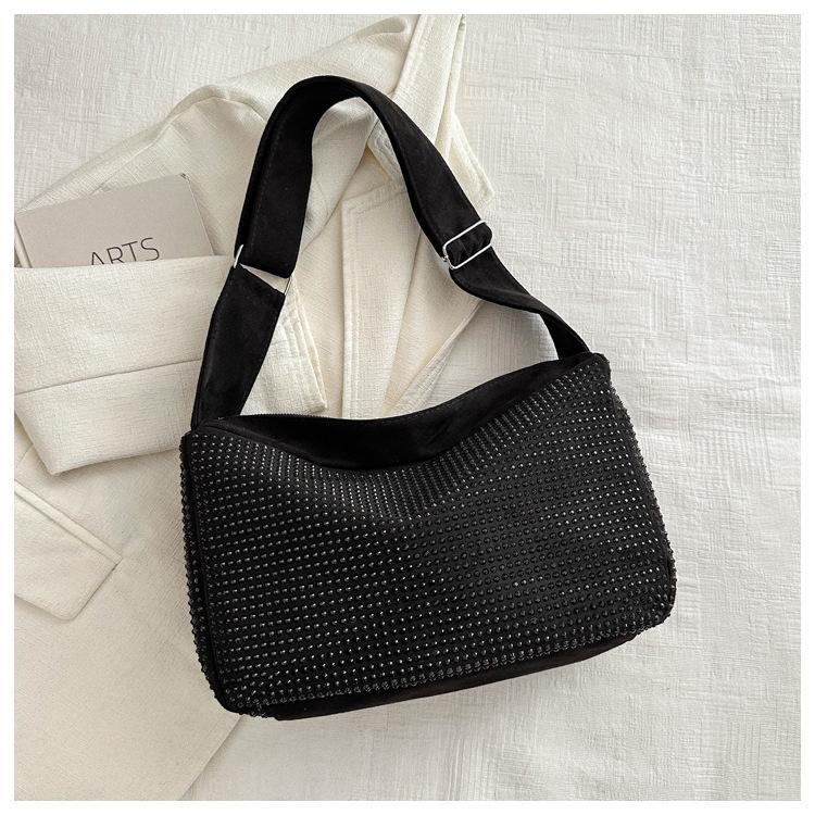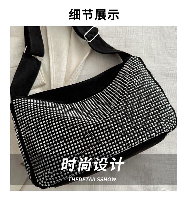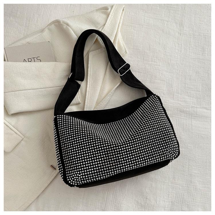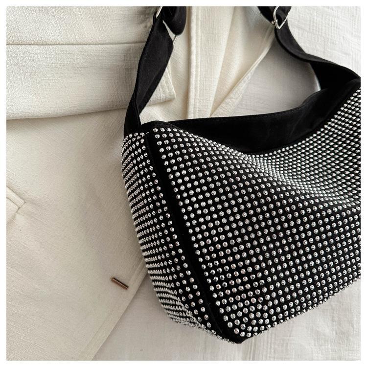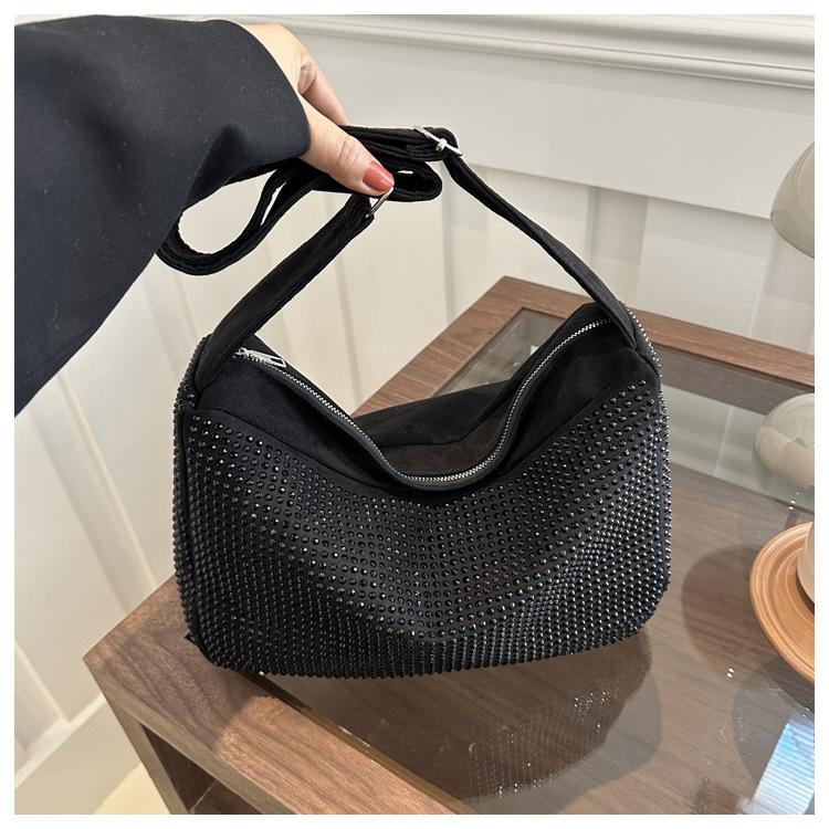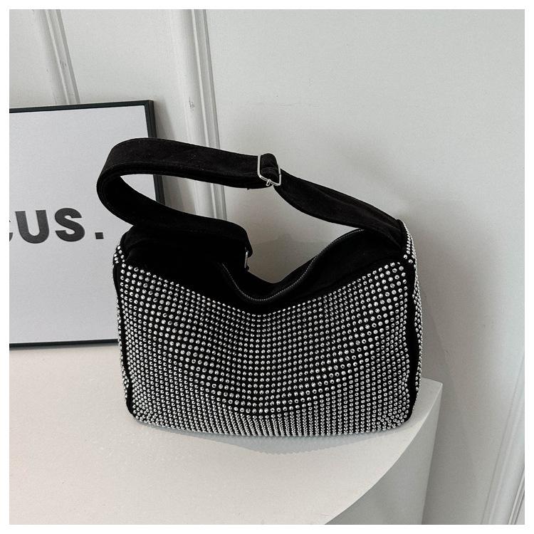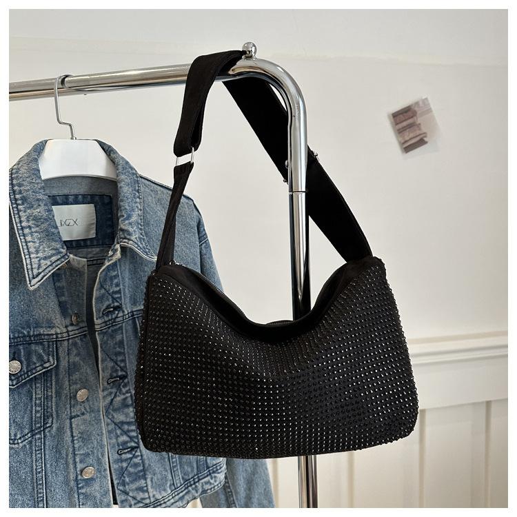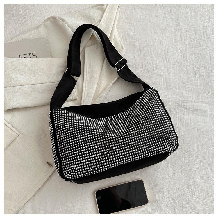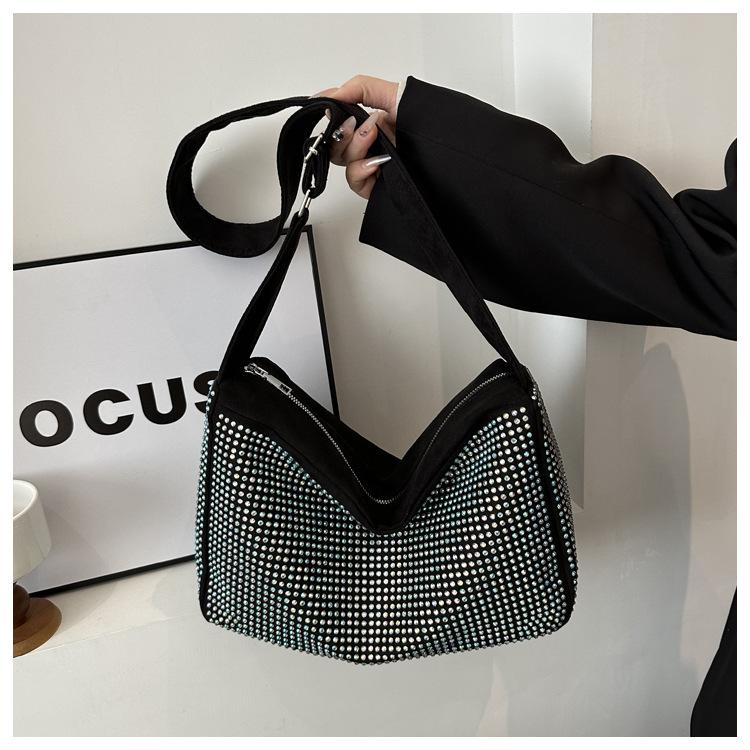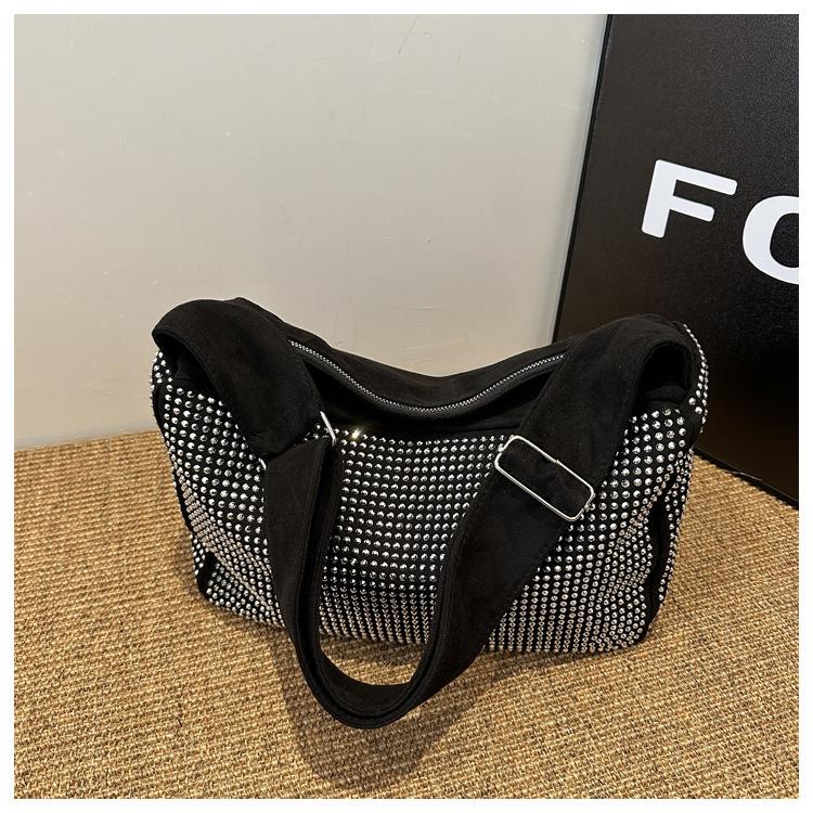 Estilo Hong Kong retrô diamante brilhante Bolsa feminina 2024 primavera nova bolsa de ombro portátil viajante casual axila bolsa feminina atacado