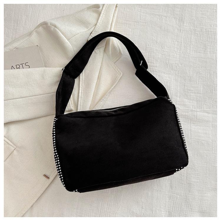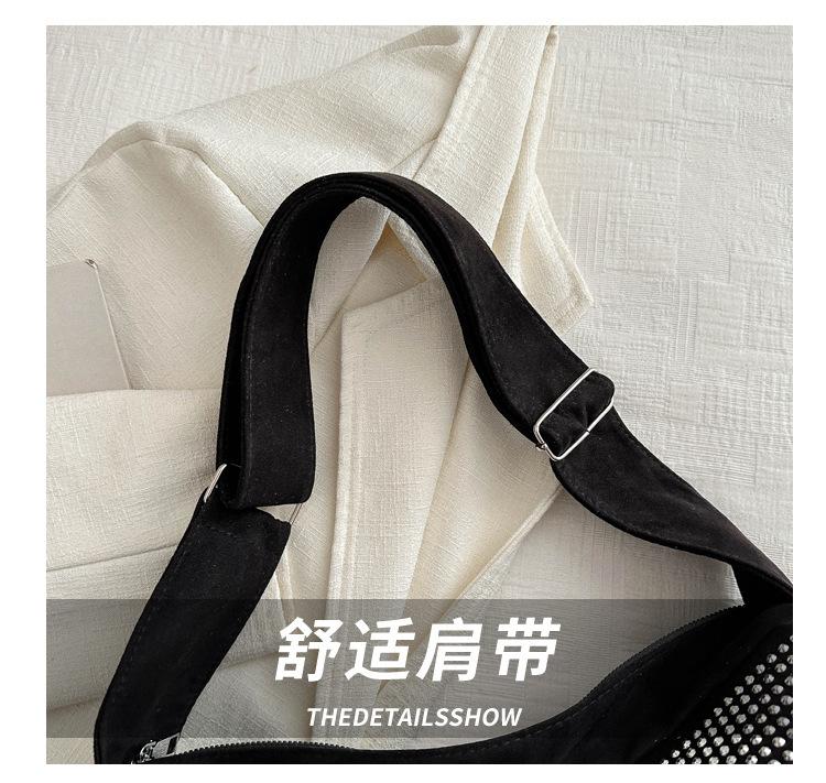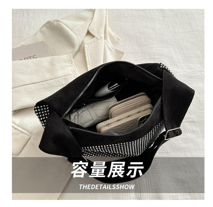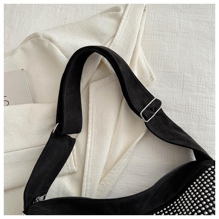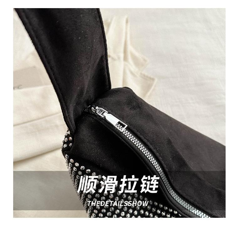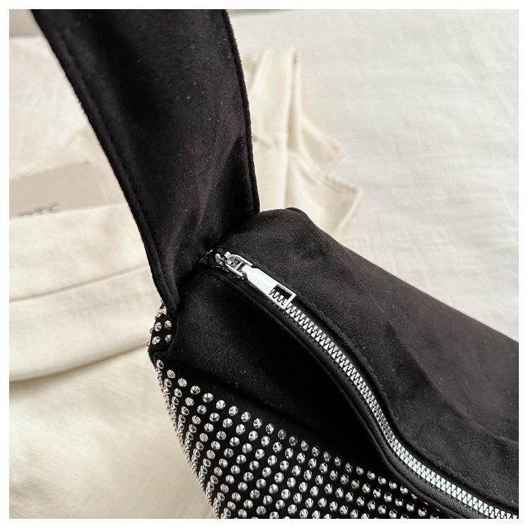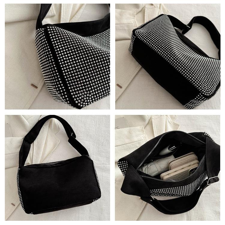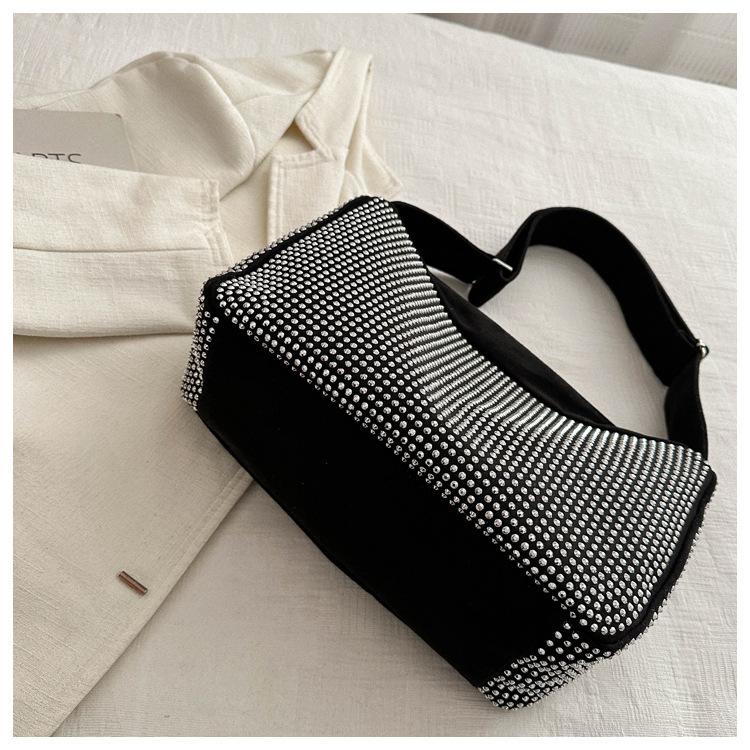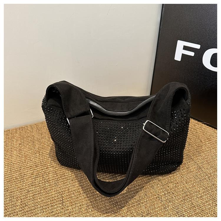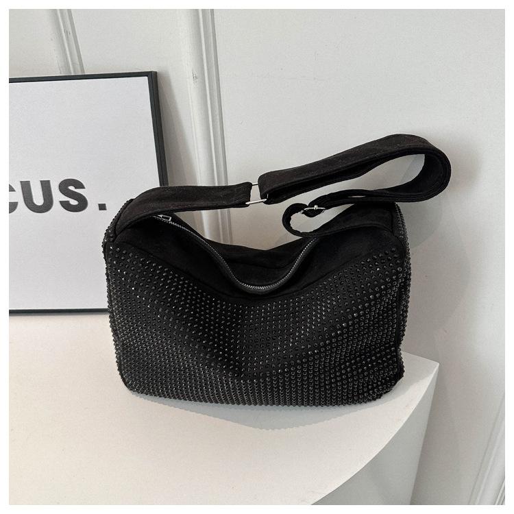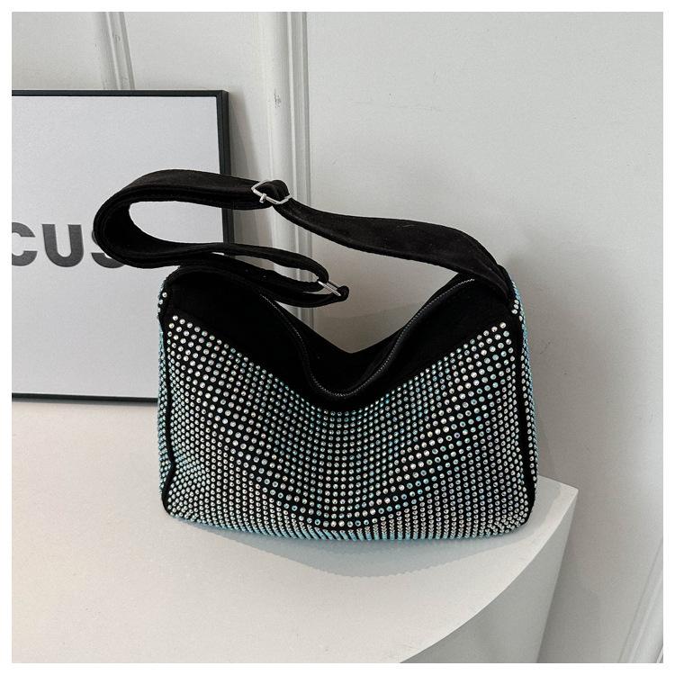 Estilo Hong Kong retrô diamante brilhante Bolsa feminina 2024 primavera nova bolsa de ombro portátil viajante casual axila bolsa feminina atacado