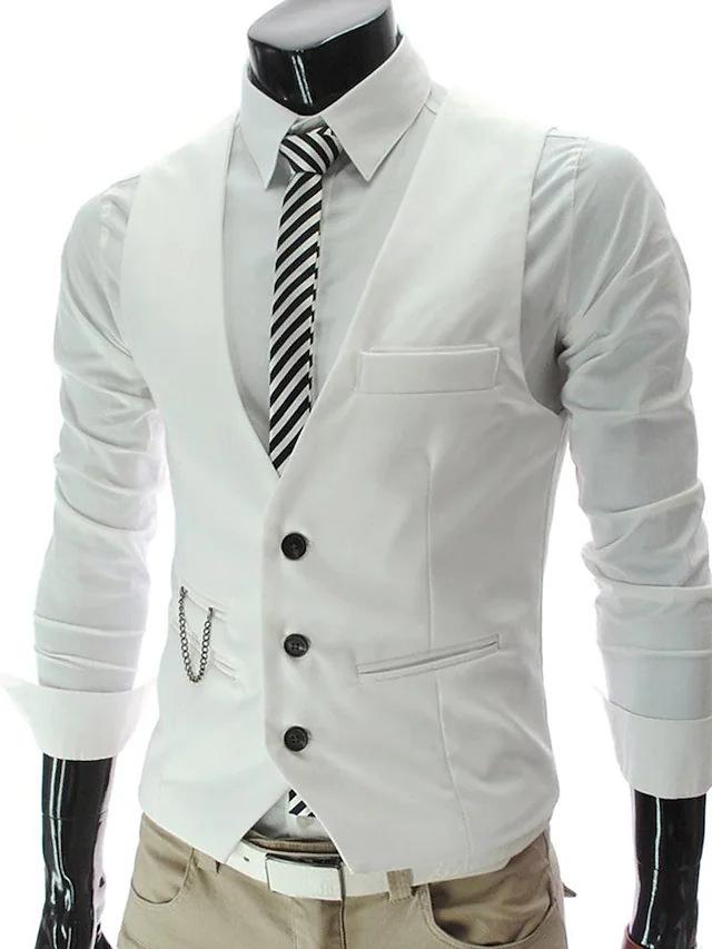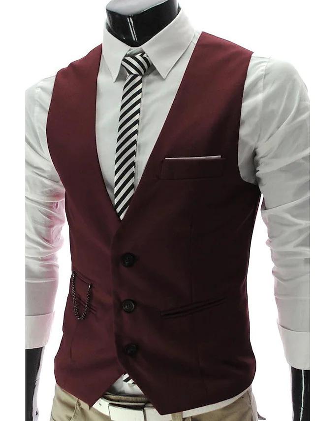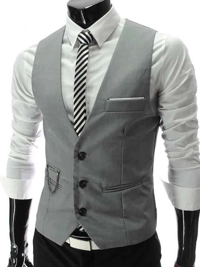 Compre Colete de Terno Masculino Formal Trabalho de Casamento Decote em V Moda 1920 s Casual Jaqueta Diária Cor Sólida no atacado no Joom.pro