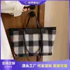 Saco de lona feminino de grande capacidade 2023 novo outono all-match shoulder bag saco de pano portátil Plaid commuter tote bag