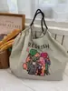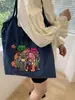 Estilo japonês desenhos animados bonito all-match grande capacidade de nylon impermeável bordado saco de compras dobrável saco de lona portátil