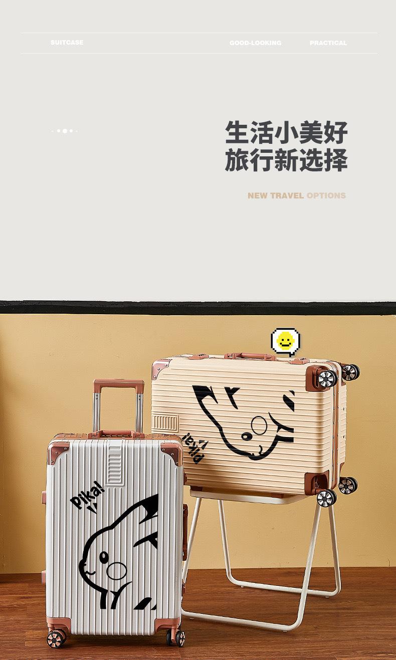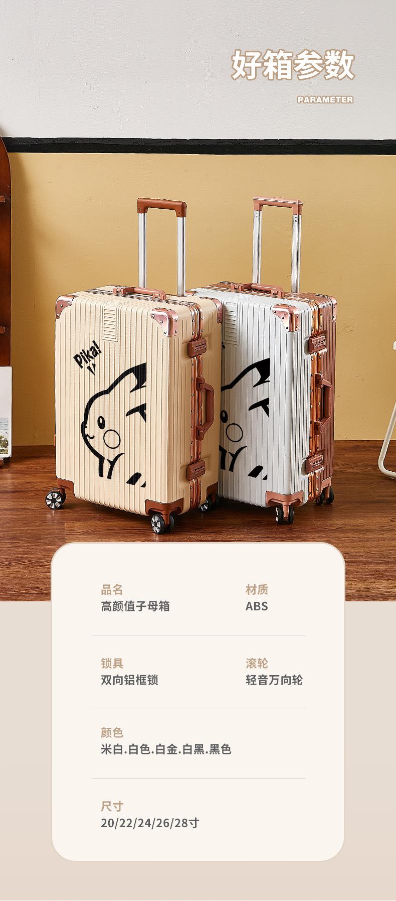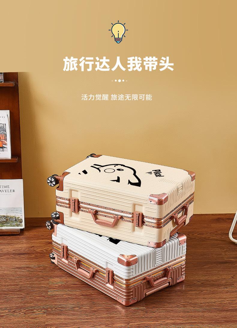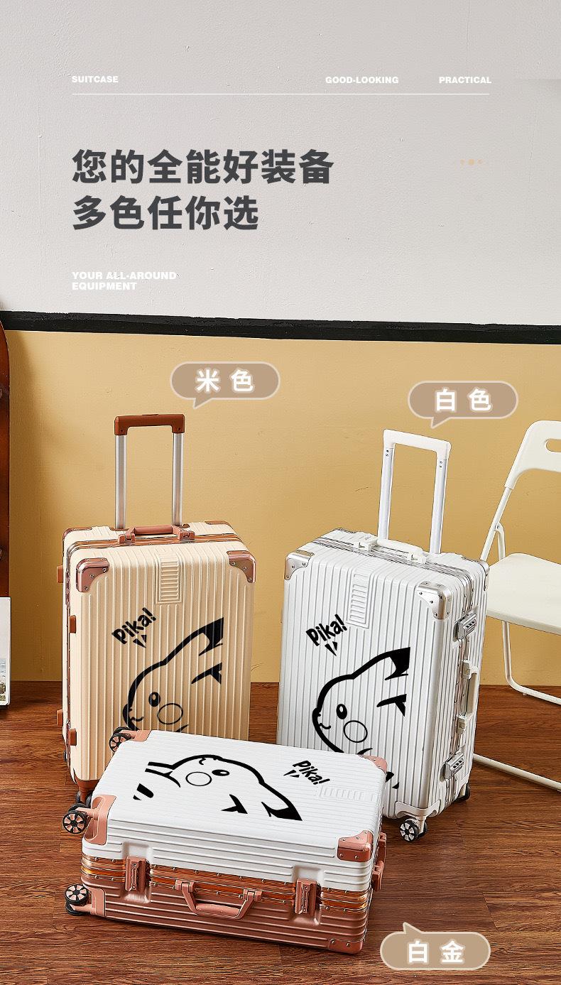 2024 Nova mala de viagem estudante moda desenho animado caixa de senha homens e mulheres silencioso alto valor cor alumínio estrutura puxar haste mala