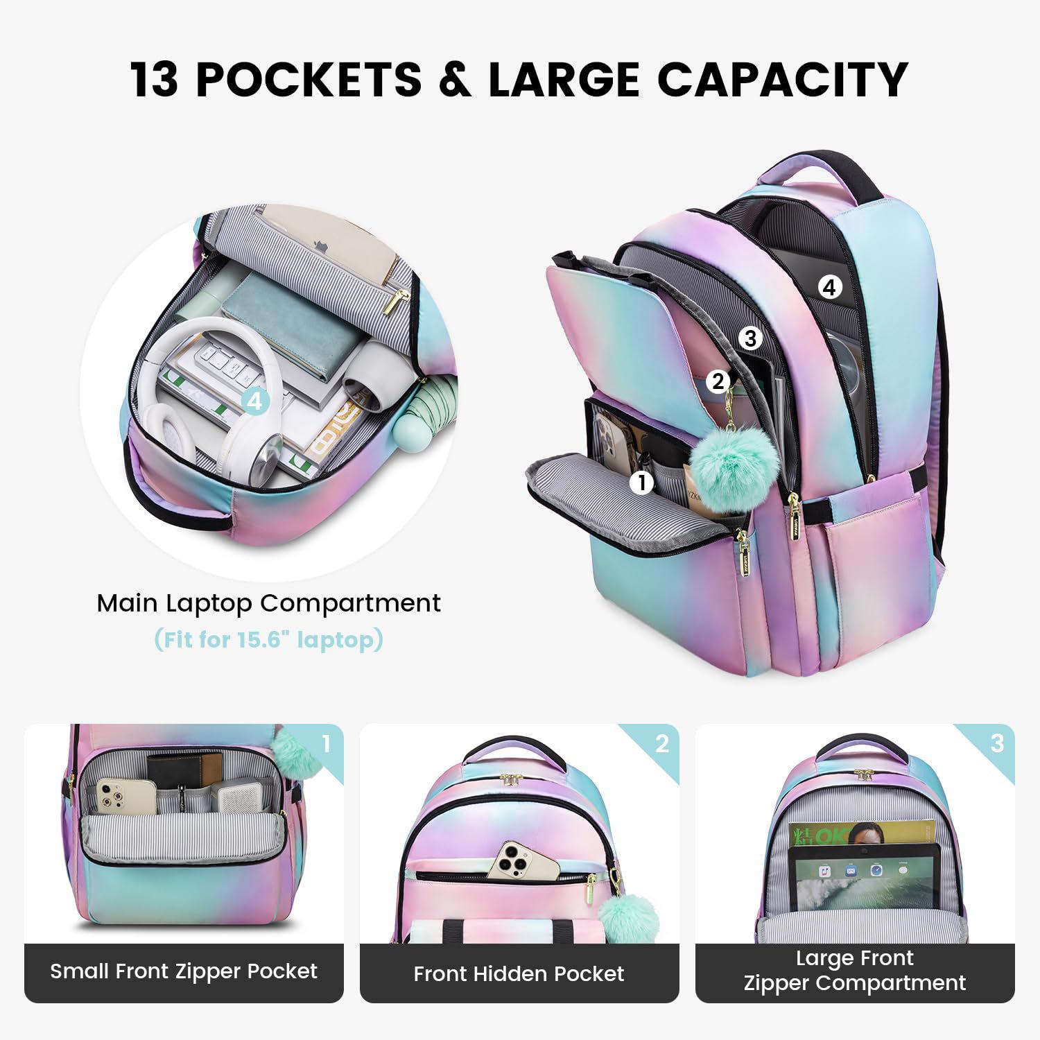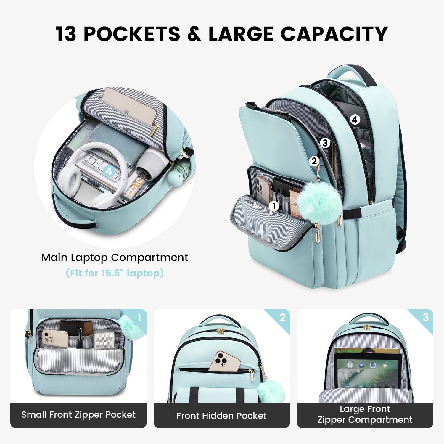 Mochila feminina para laptop, carteira, trabalho, viagem, negócios, bolsa para computador