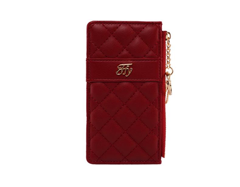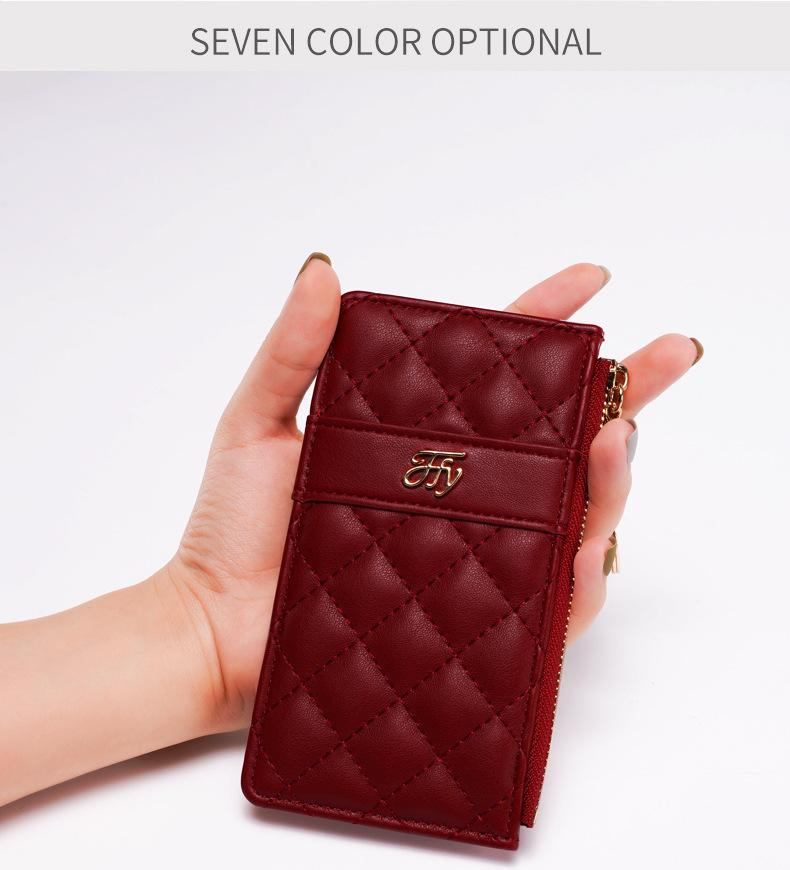 Porta-cartões romboide de estilo coreano Carteira de vários cartões Bolsa de moedas de bordado Porta-cartões pequeno PU da moda feminina Porta-bilhetes com zíper vertical