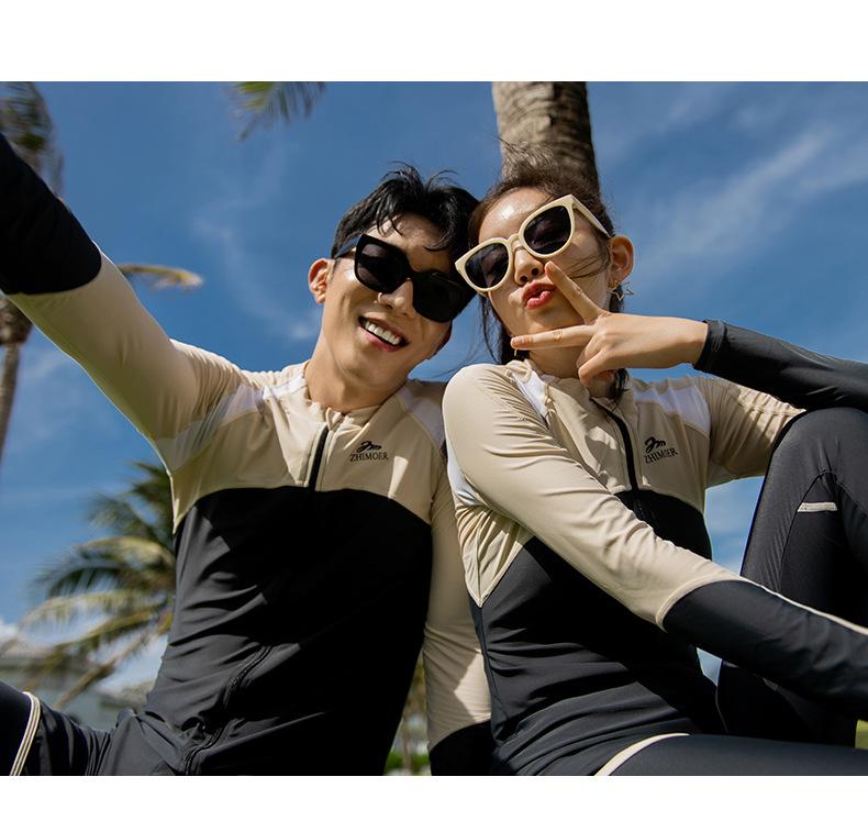 Traje de Banho Resort Coreano Dividido Manga Longa Esportivo Proteção Solar Secagem Rápida 2024 Roupa de Neoprene para Casal Atacado Transfronteiriço Moda Praia