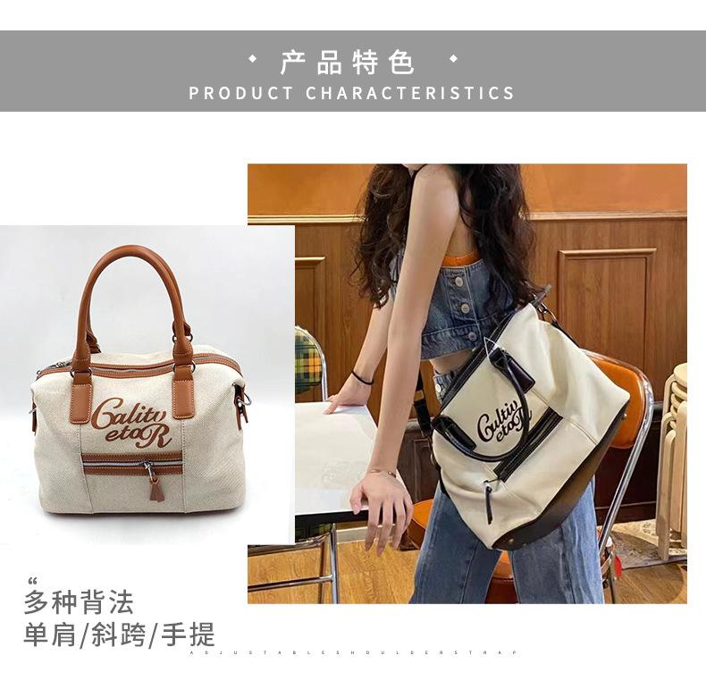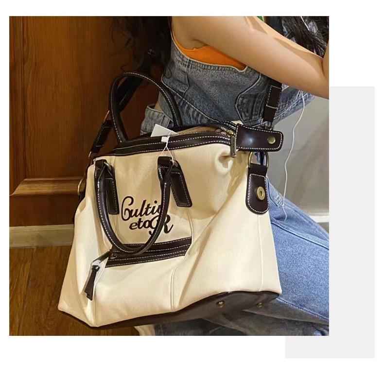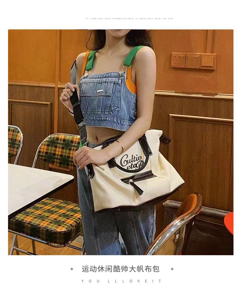 Moda Bolsa Grande Viagem Curta Letra Bolsa Tote de Ombro Moderna Estudante Universitário Bolsa de Lona Atacado Transfronteiriço Feminino