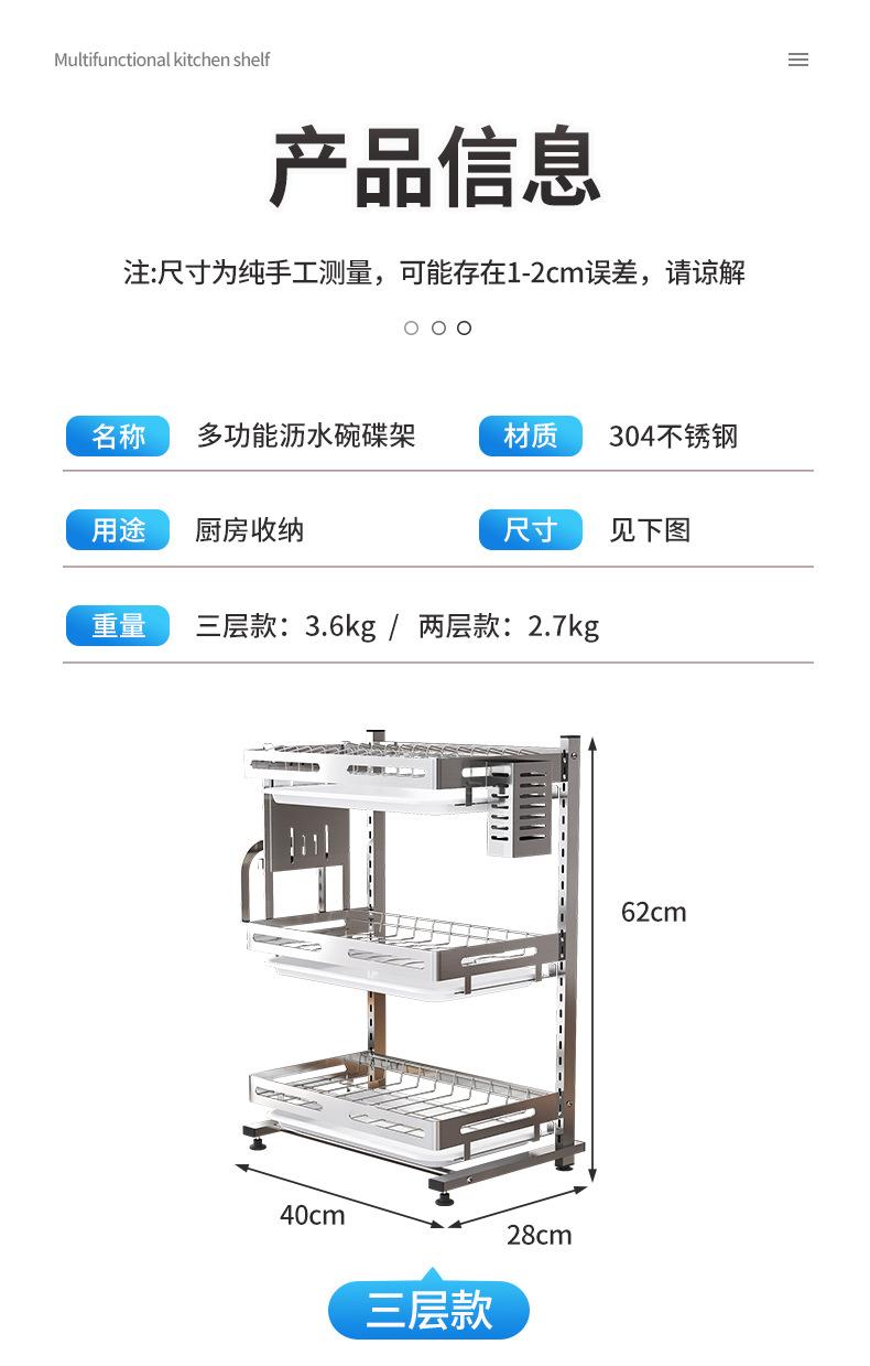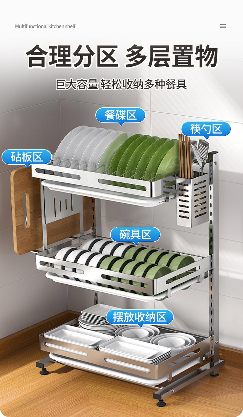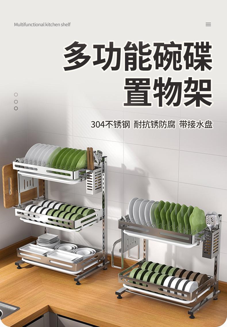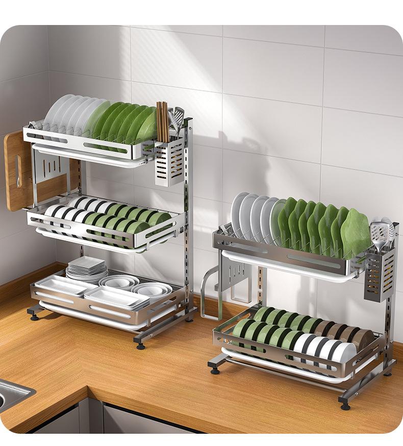 Compre Prateleira de cozinha de aço inoxidável para armazenamento, mesa doméstica, escorredor multifuncional, escorredor para pauzinhos, tigela e escorredor de pratos, utensílios de cozinha M no atacado no Joom.pro