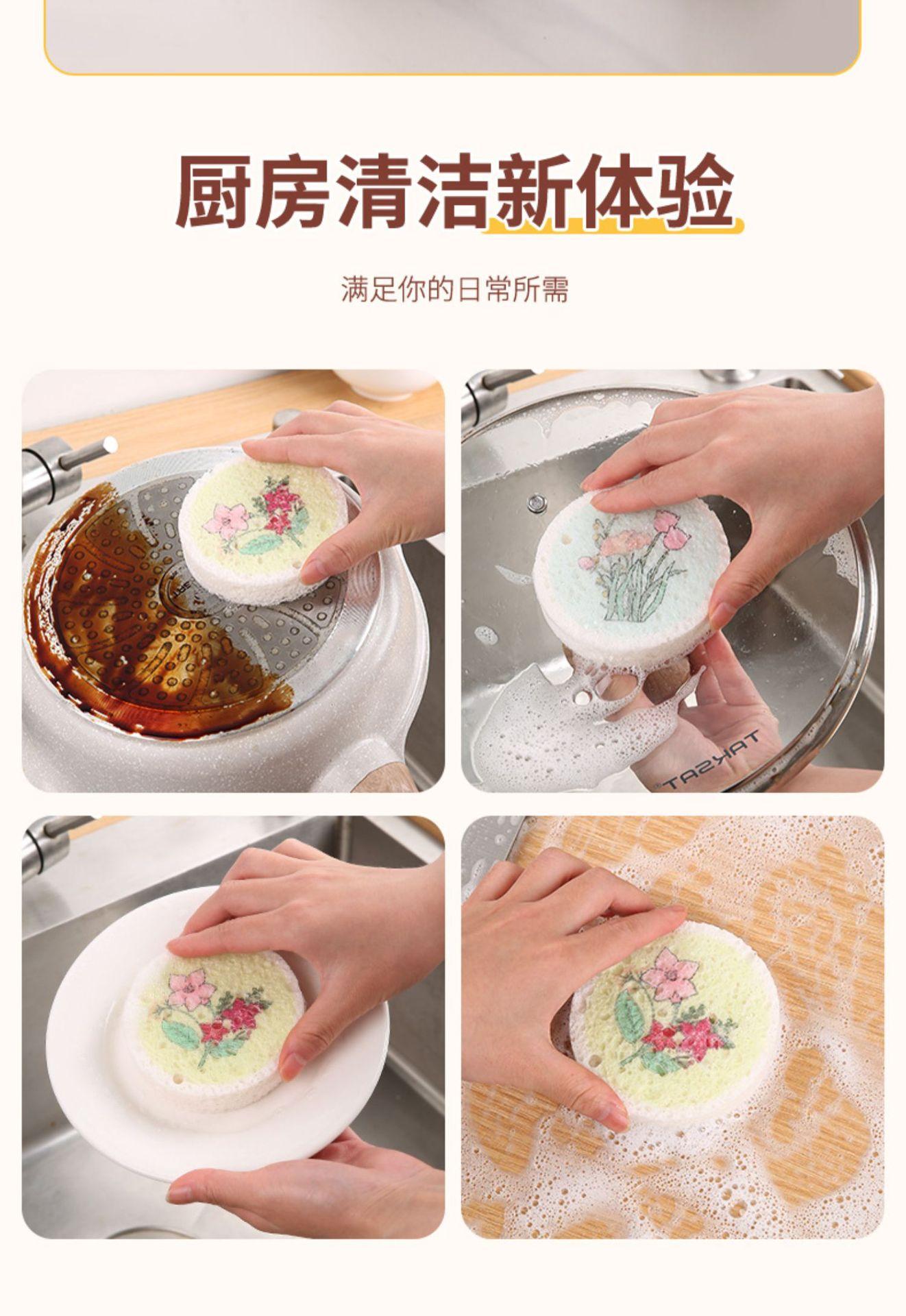 Polpa de madeira algodão esponja limpar comprimido esfregão almofada esponja pano prato antiaderente óleo cozinha especial pincel de panela mágica