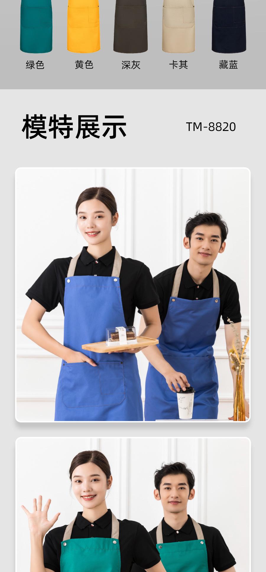 Roupas promocionais para bebidas de verão, camisetas, roupas de trabalho, logotipo personalizado, lona, avental pendurado no pescoço, roupas de trabalho personalizadas, camisa publicitária