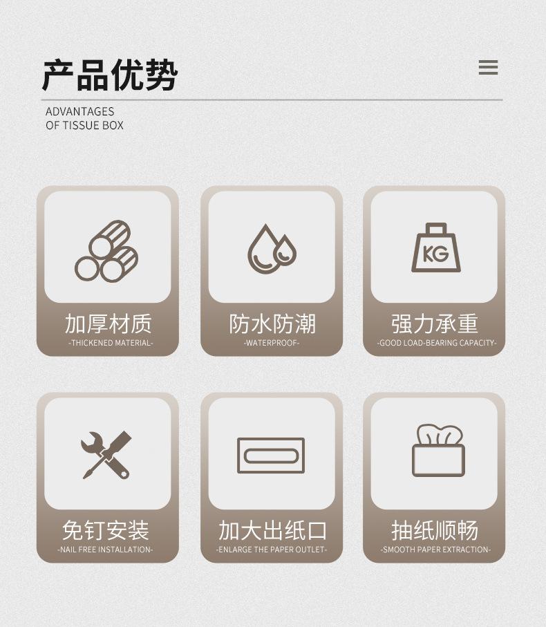 Armazenamento de lenços de papel sem perfuração montado na parede Caixa de papel de cozinha Sala de estar Caixa de papel de seda Toalha de rosto doméstico Caixa de papel de seda