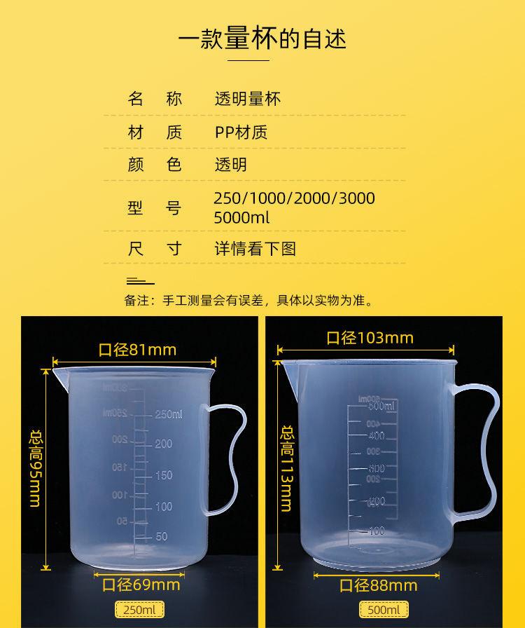 Copo de medição 5000ml copo de medição de plástico grosso resistente a ácidos e álcalis copo de medição copo de medição de dupla face