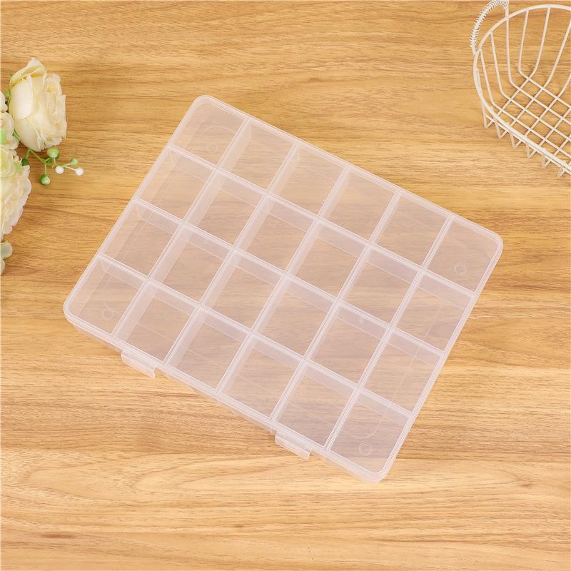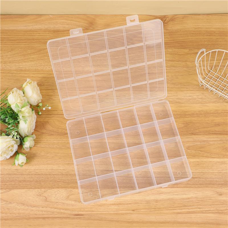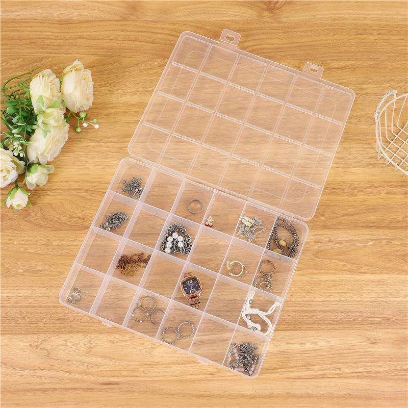 Caixa de Joias de Plástico Fixa Grande com 24 Divisórias Peças Brinquedos Elástico de Cabelo Grampo Acabamento Contas Caixa de Armazenamento Transparente