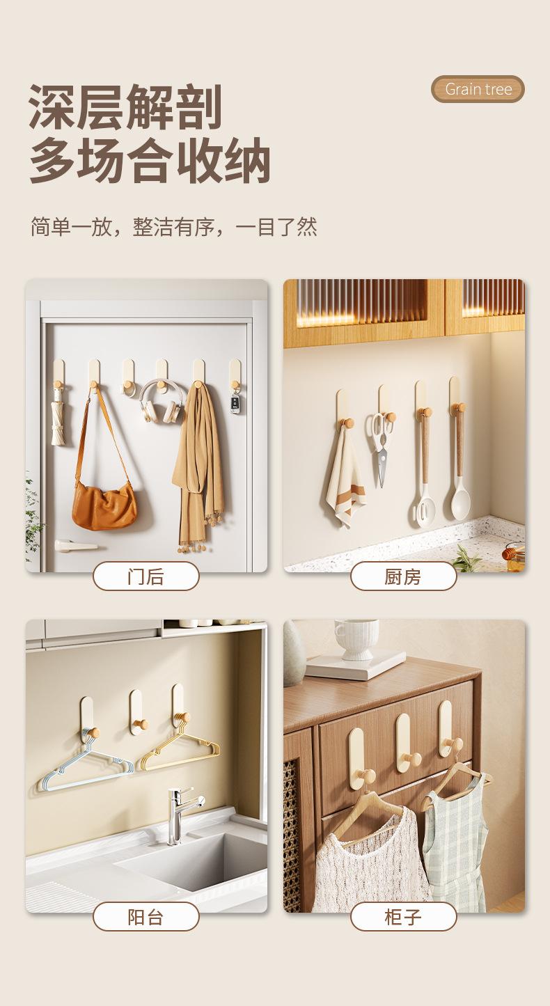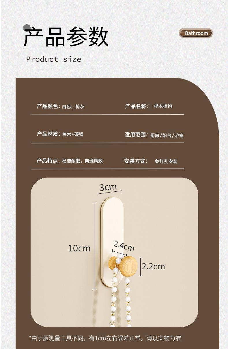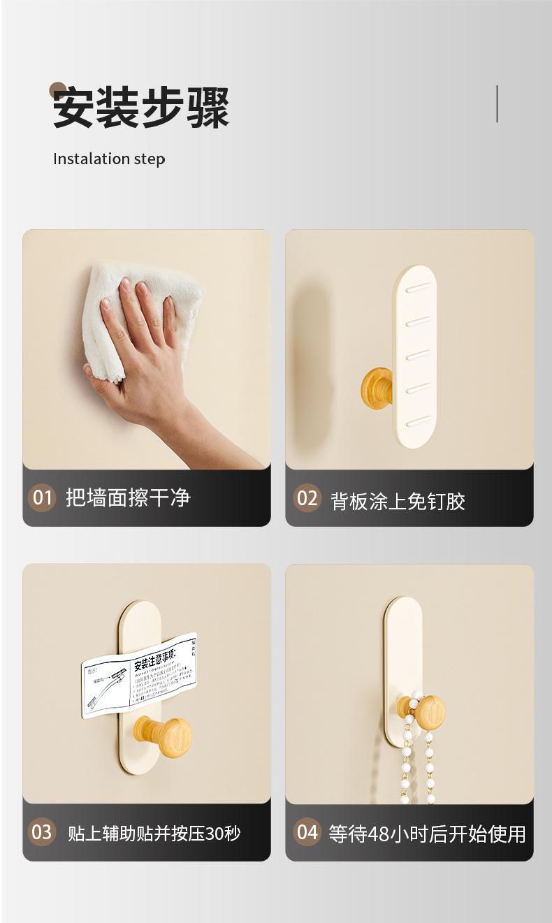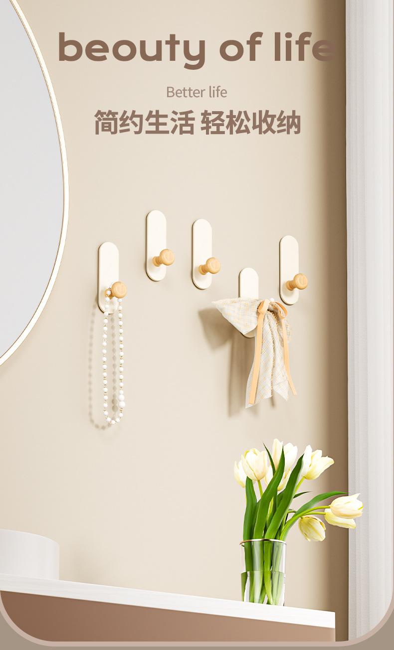 Gancho de Pendurar Roupas de Madeira de Faia Pendurado na Parede Porta de Entrada Guarda-roupa Gancho de Roupas Branco Gancho de Casaco de Parede Sem Perfuração