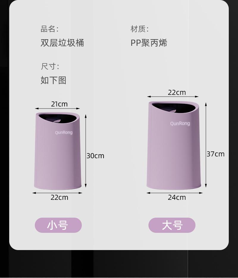 Lixeira de plástico de camada dupla Doméstico High-end Sense Hotel Toilet Grande Lixeira Cozinha Banheiro Tipo Aberto Lixeira