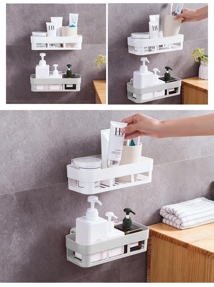 Rack de parede para banheiro sem perfuração Artigos de higiene pessoal de parede sem costura Rack de armazenamento de banheiro retangular