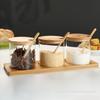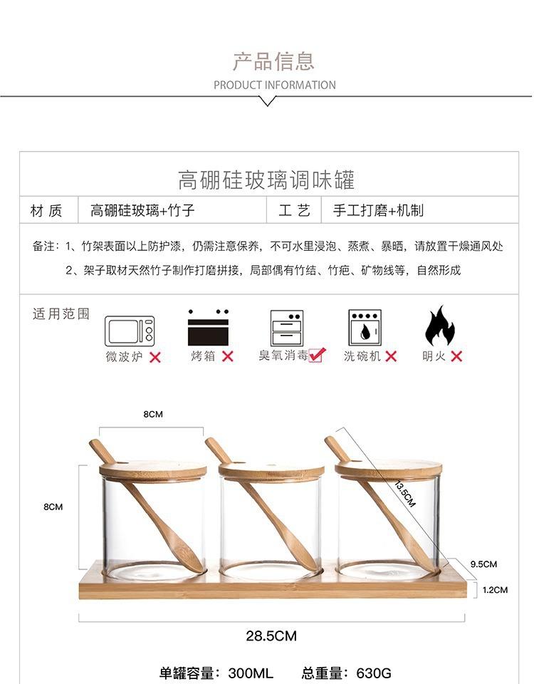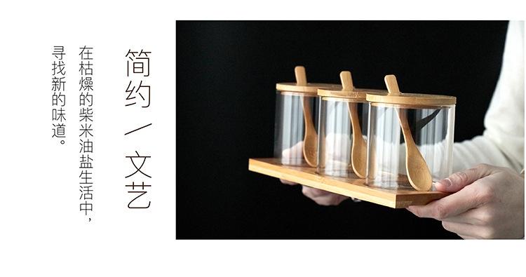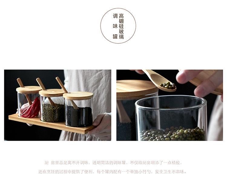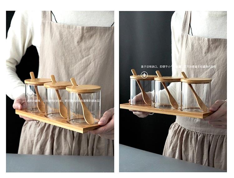 Frasco de tempero de vidro com tampa e conjunto de colher Atacado japonês doméstico sal açúcar MSG frasco de tempero Frasco de armazenamento de cozinha