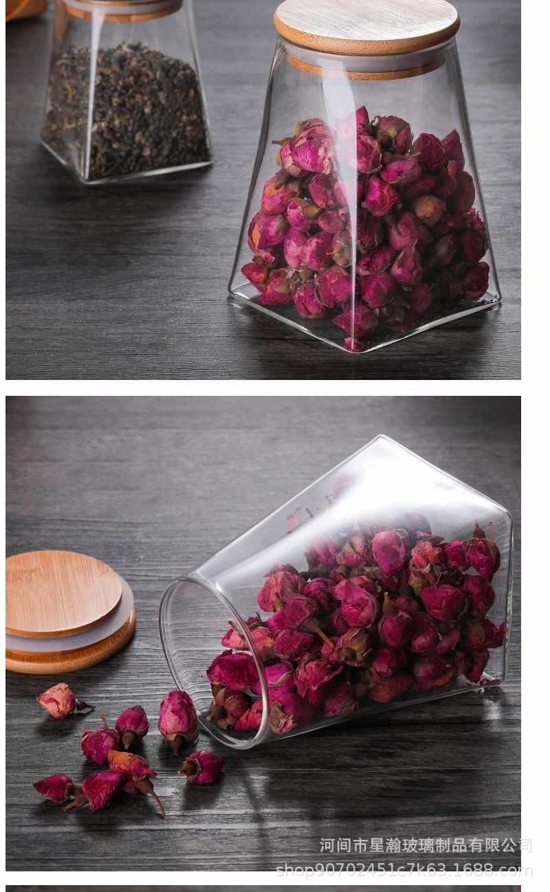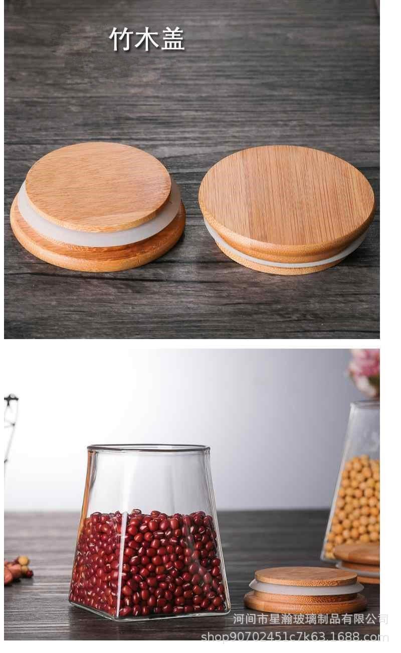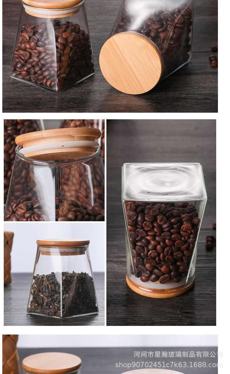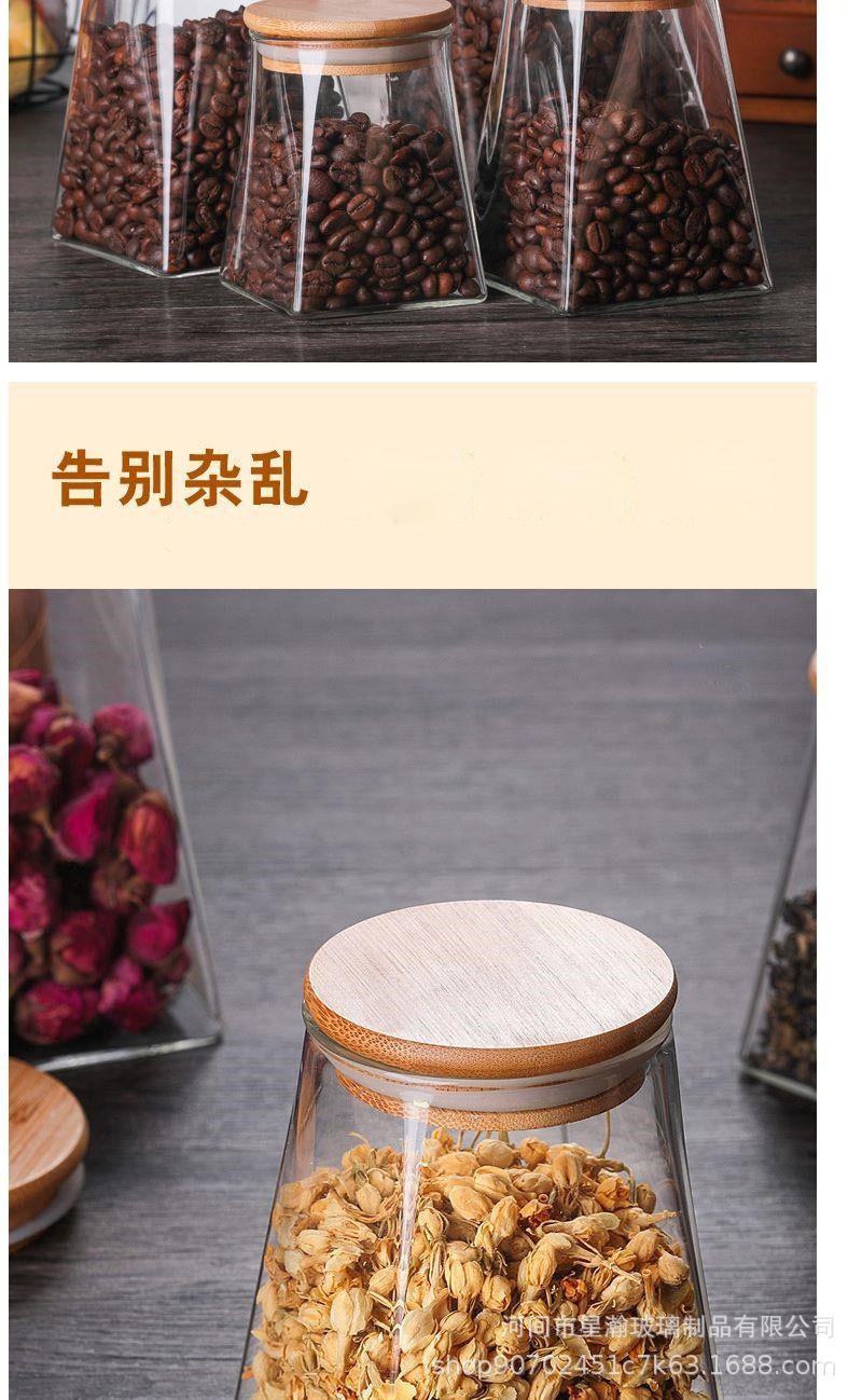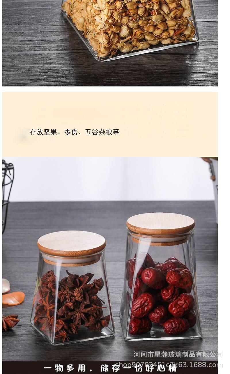 Tampa de bambu jarra de chá de vidro doméstico quadrado jarra de armazenamento de grãos jarra de armazenamento trapezoidal jar de chá selado jar