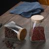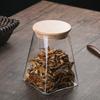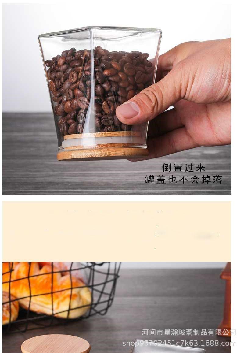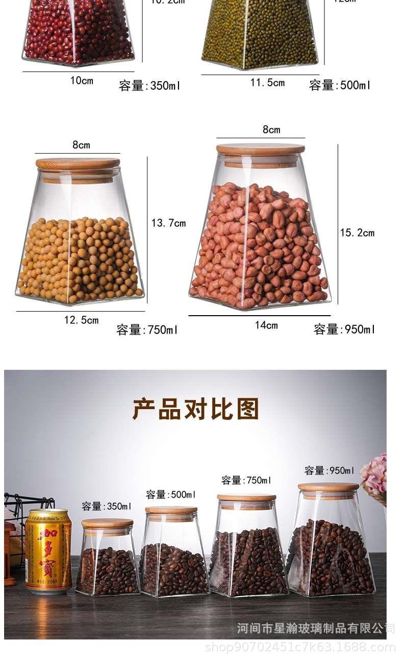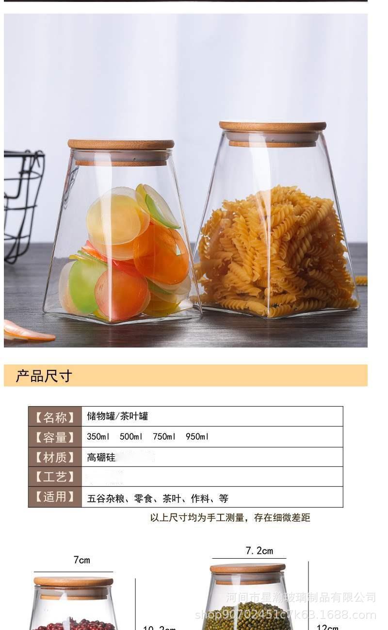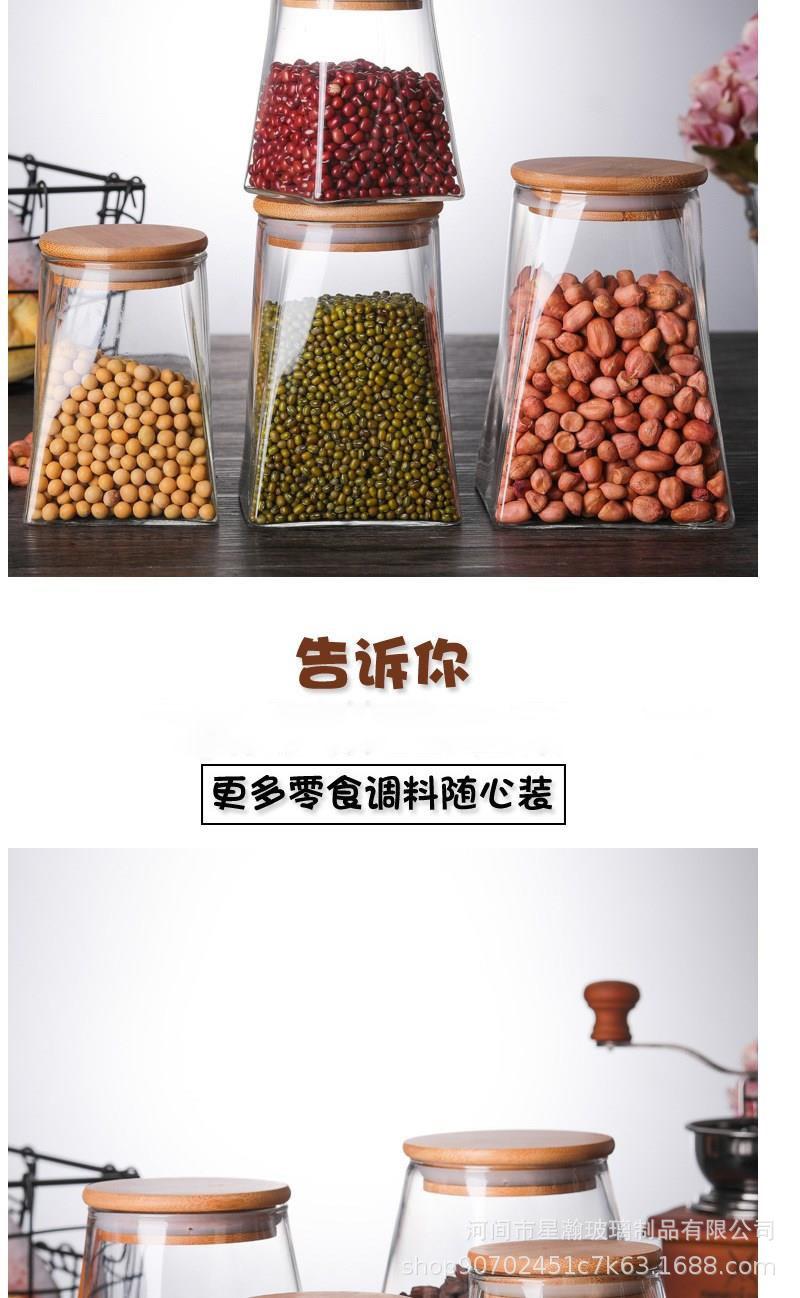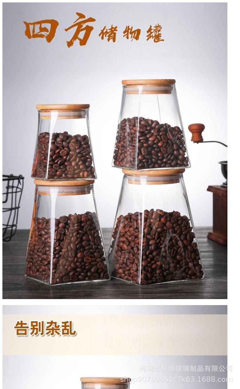 Tampa de bambu jarra de chá de vidro doméstico quadrado jarra de armazenamento de grãos jarra de armazenamento trapezoidal jar de chá selado jar