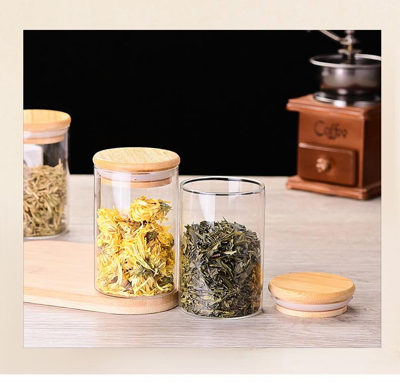 Algodão Perolado Conjunto de 6 Peças Pote de Vidro com Vedação Pote de Armazenamento Cozinha Vidro Pote de Chá Condimento Pote de Vidro