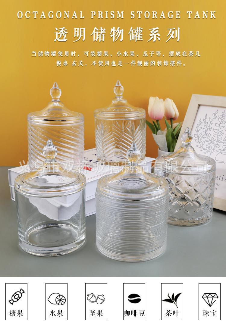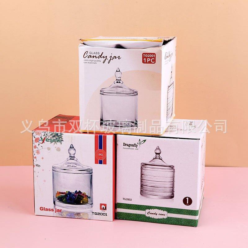 Frasco de armazenamento de vidro simples com tampa Lanche Copo de doces Caixa de jóias de casamento Tempero doméstico Armazenamento de frutas secas Caixa