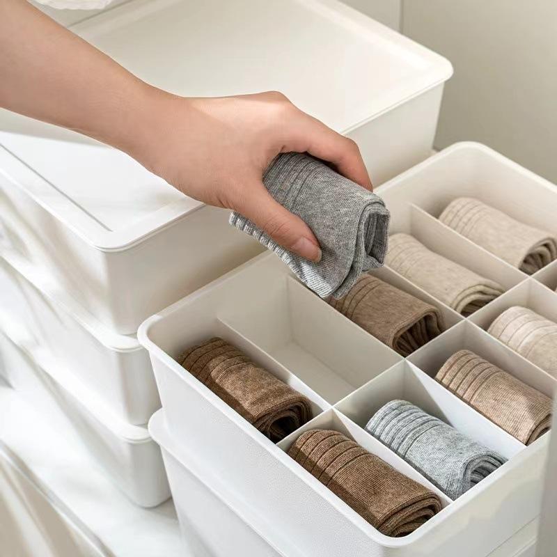 Caixa Organizadora de Roupas Íntimas e Meias, Caixa Organizadora para Dormitório Universitário, Caixa Organizadora com Compartimentos para Guarda-Roupa com Tampa, À Prova de Poeira