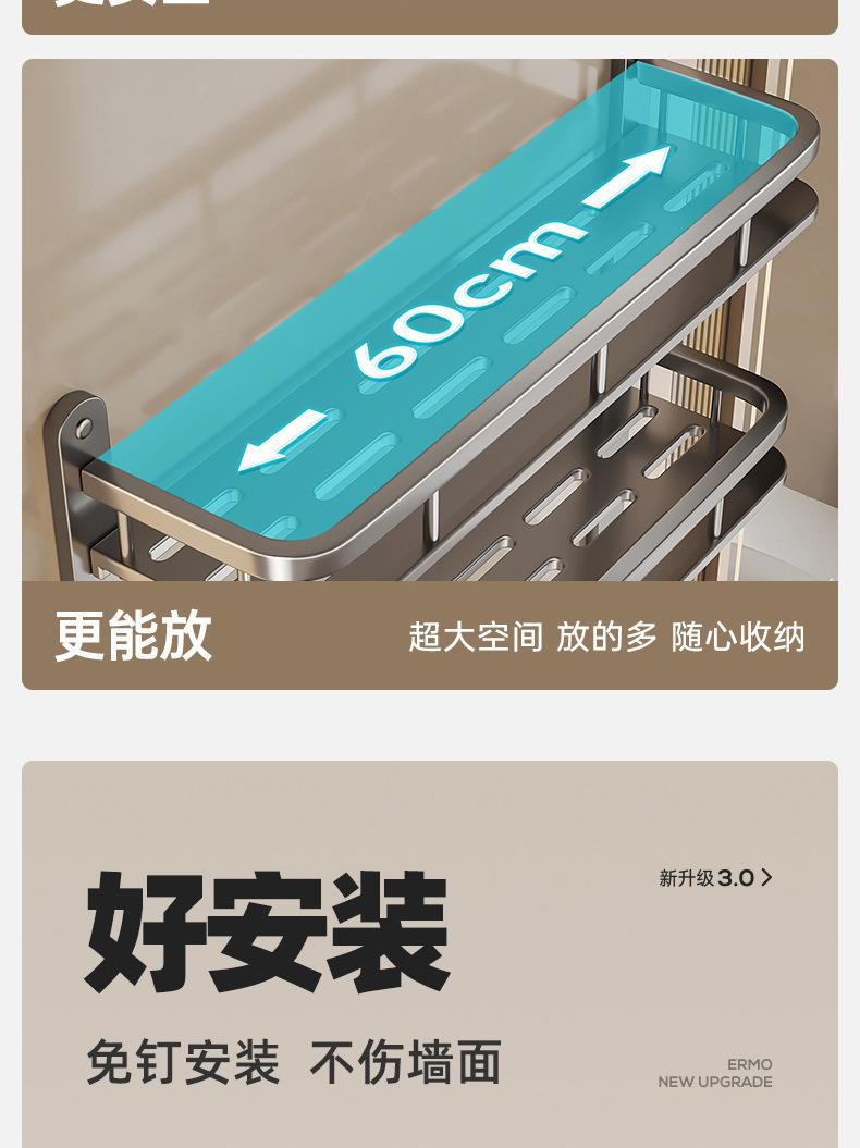 Espaço de alumínio prateleira do banheiro prateleira do vaso sanitário lavatório do banheiro lavatório do banheiro sem perfuração pendurado na parede