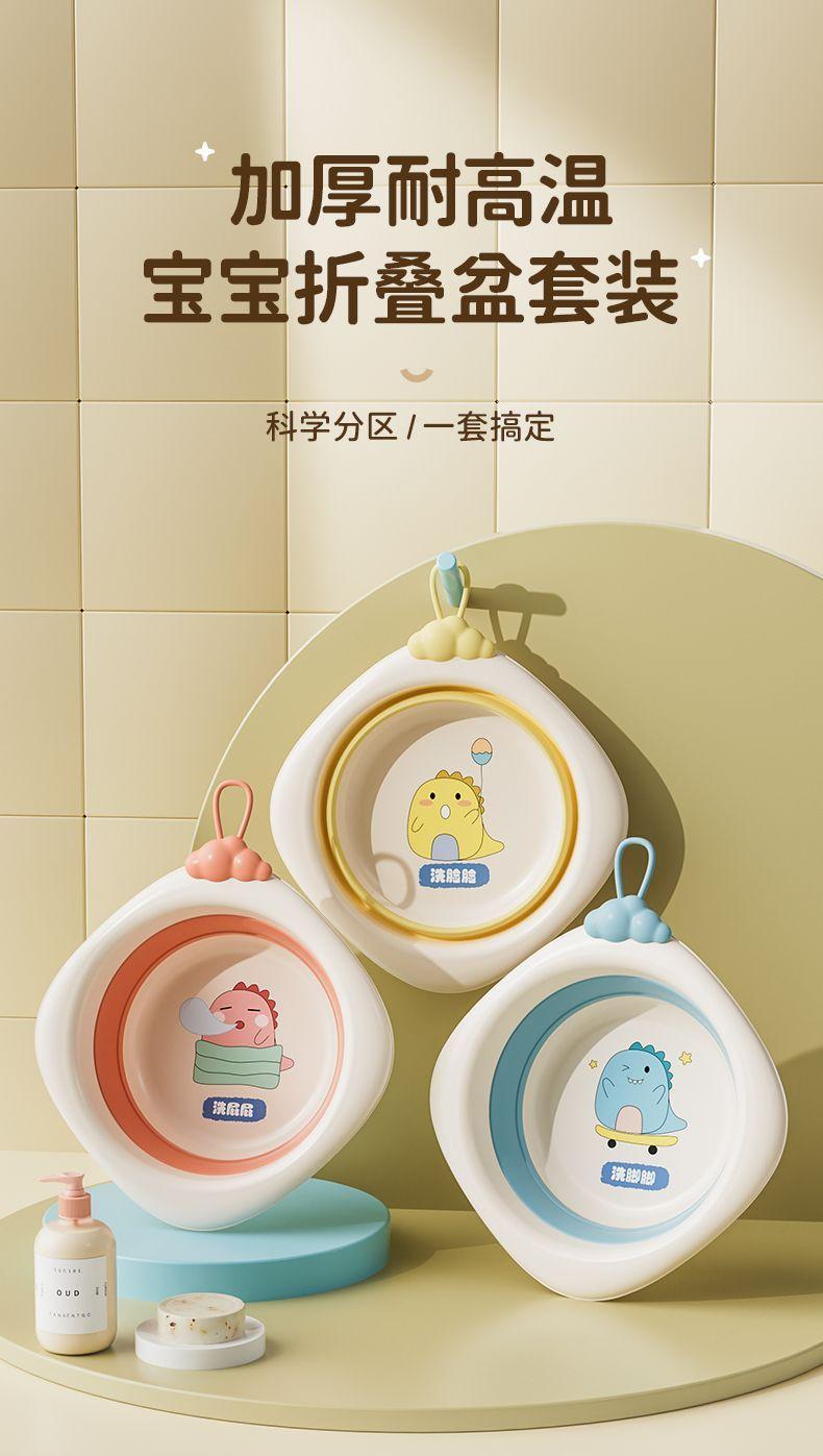 Bacia de Lavar Dobrável para Bebê com Lavador de Bumbum Infantil Bacia Pequena para Recém-Nascido Conjunto de Três Peças