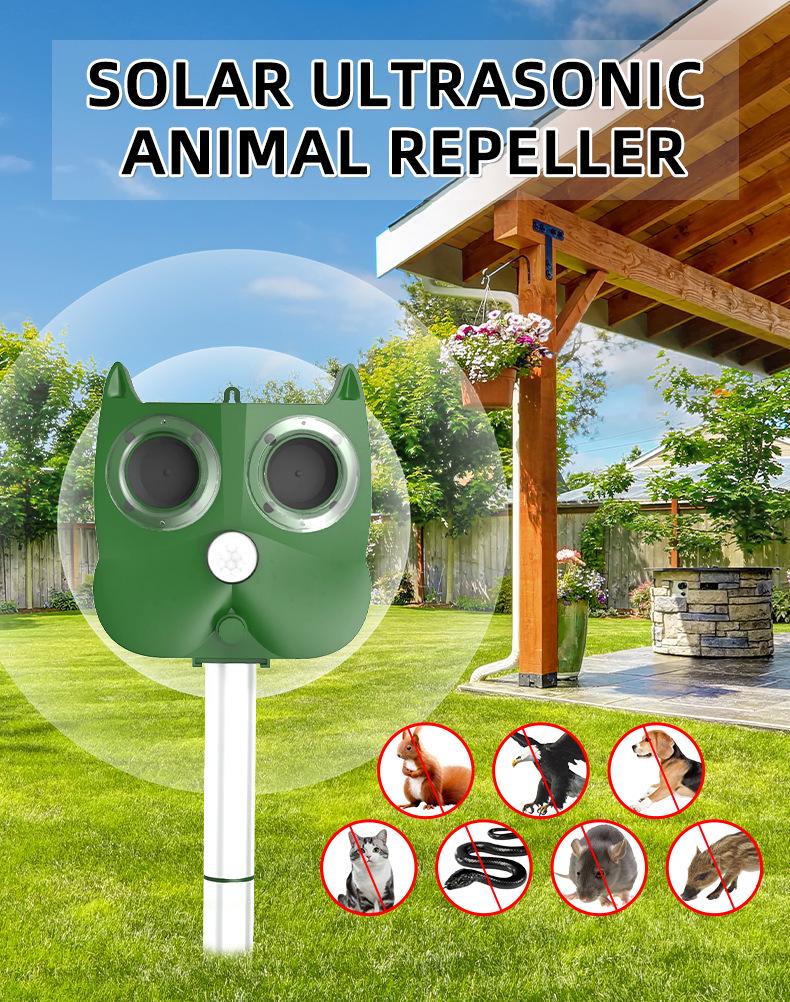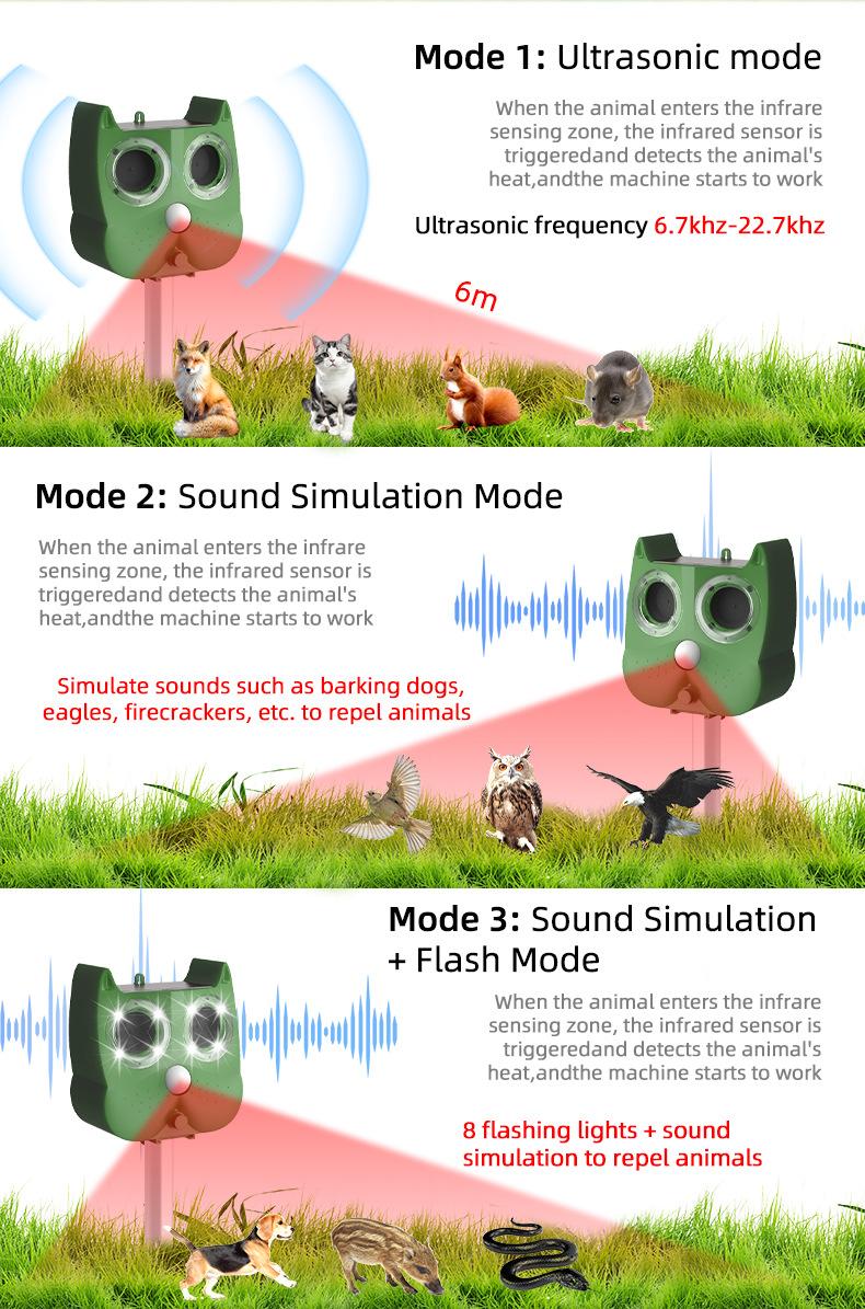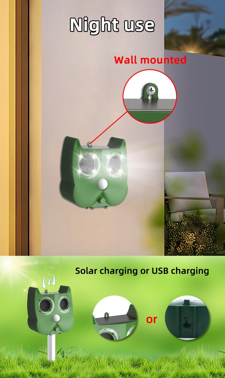 Repelente de Pássaros Ultrassônico de Alta Potência Transfronteiriço Impermeável para Exterior Repelente de Animais Flash LED Solar
