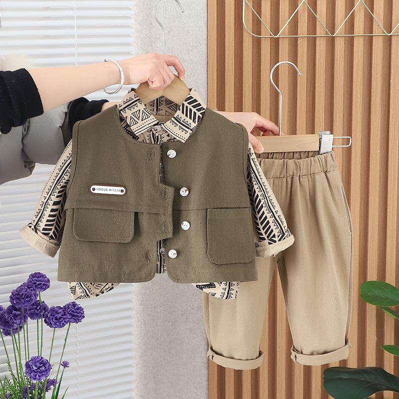 Roupas infantis para meninos outono 2024 novo suéter coreano terno calças casuais infantis conjunto de três peças na moda