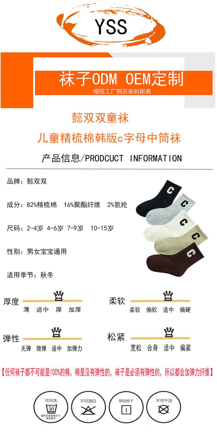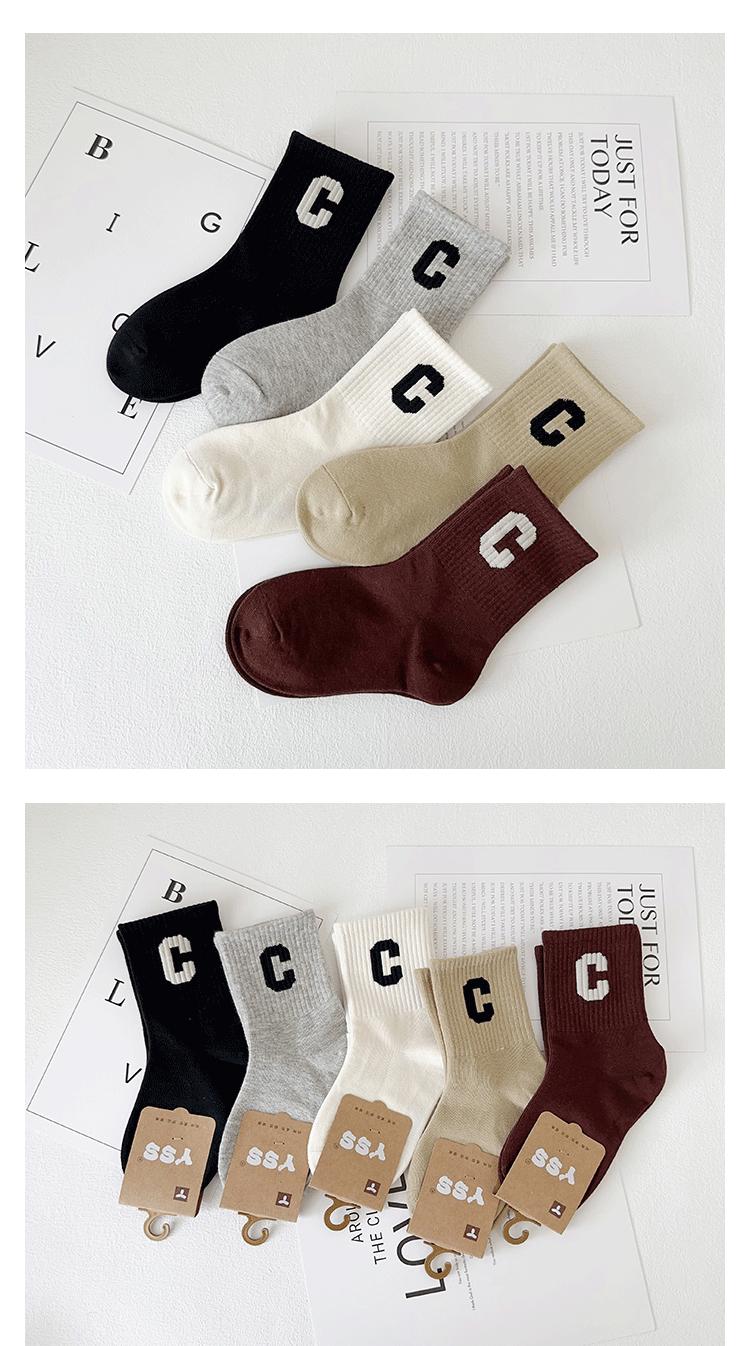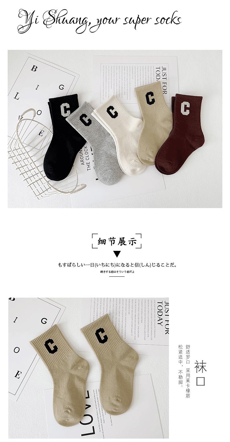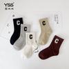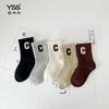 Yi Pair Meias Infantis Outono e Inverno Novo Estilo Coreano C Letra Mid-tube Meias Algodão Penteado Meias Esportivas Meias de Estudante