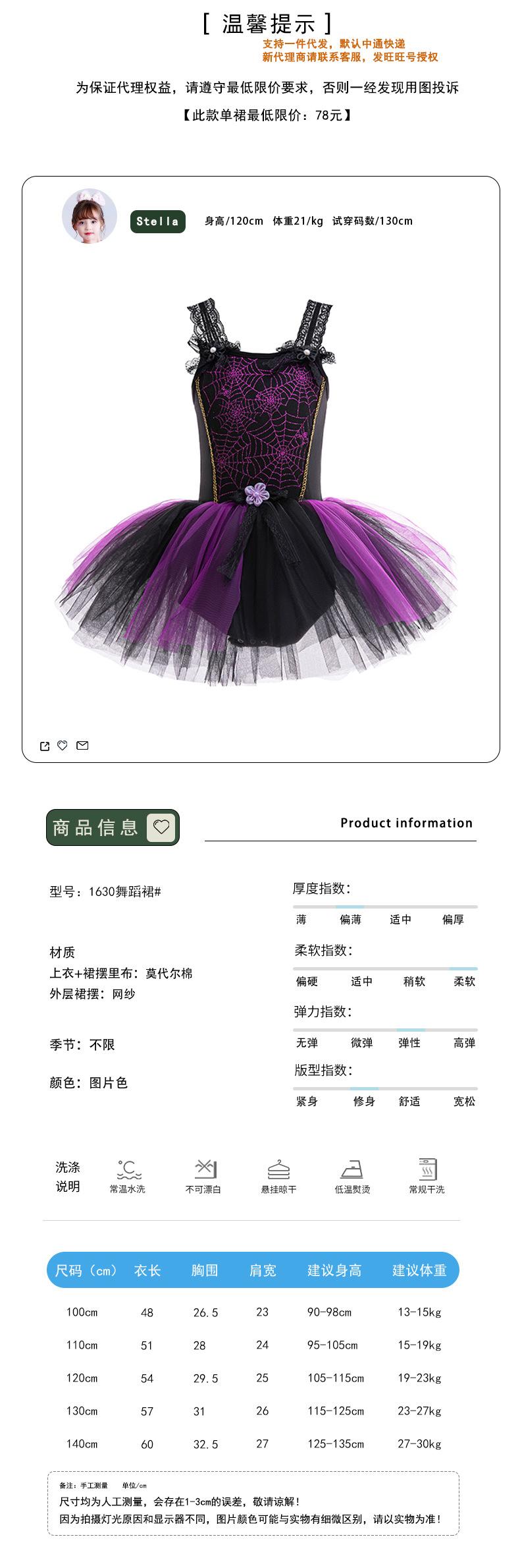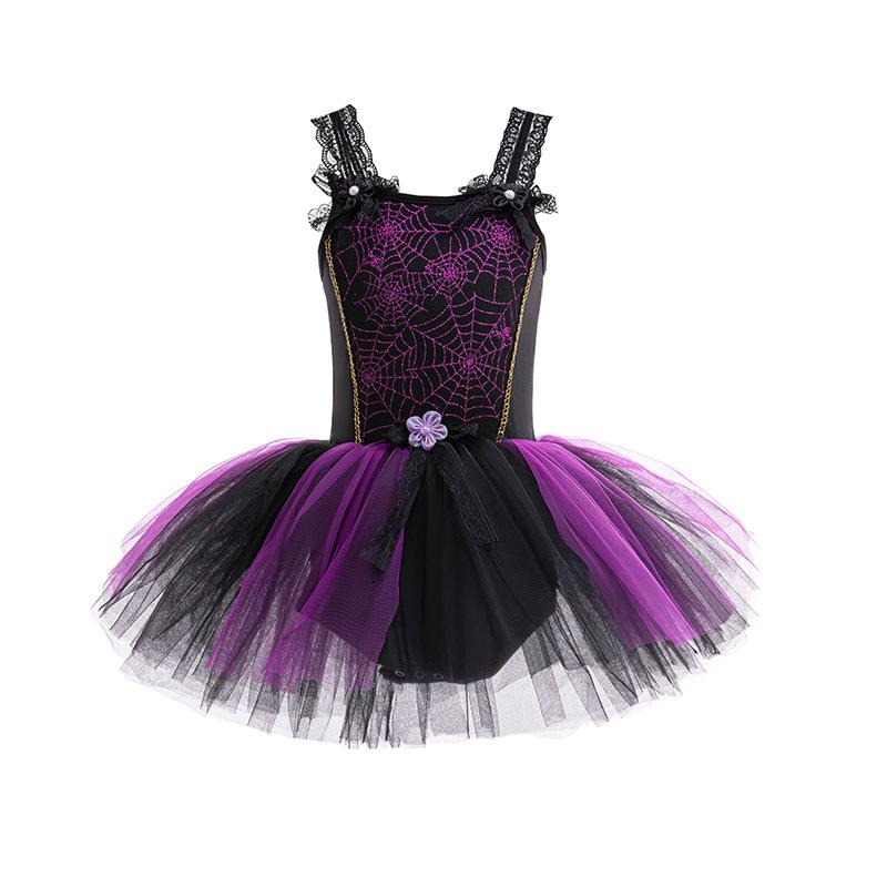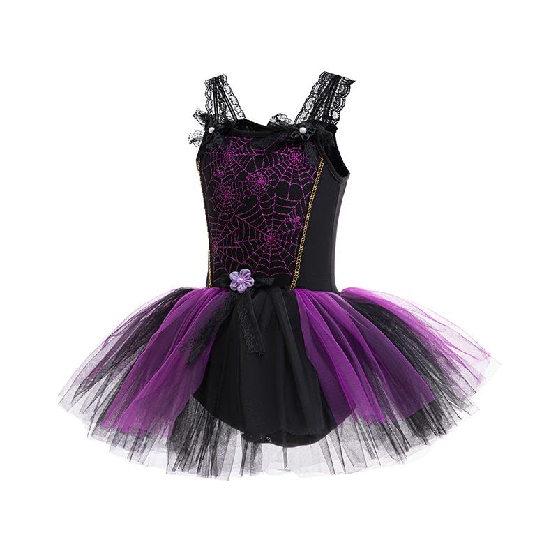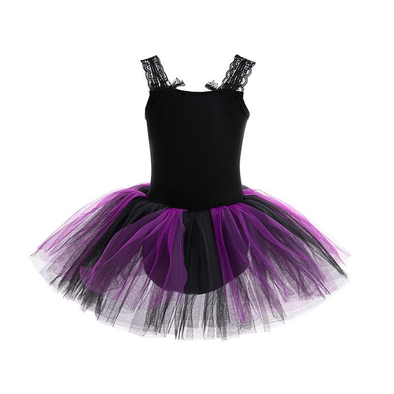 Roupas de dança Roupas de treinamento para crianças Traje de dança para meninas Malha de manga curta Vestido de balé infantil de uma peça para o Halloween