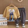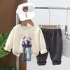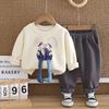 Terno de primavera e outono para meninos 2024, roupas novas de outono estilo ocidental para bebês, roupas casuais de manga comprida de duas peças para meninos