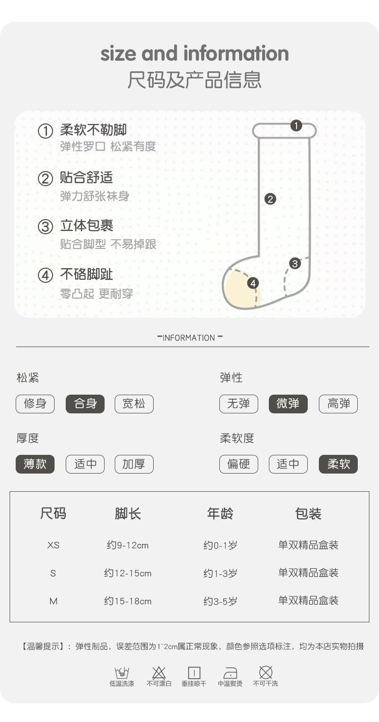 Xs recommended foot length 9-12cm, S recommended foot length 12-15cm, M recommended foot length 15-18cm